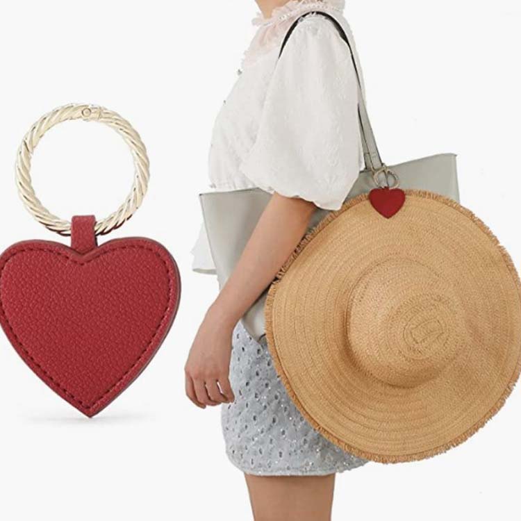 マグネットで挟める 麦わら ハート型 用 PU 帽子 クリップ アクセサリー クリップ ハット アウトドア ホルダー 帽子クリップ 鞄 カバン バッグ 皮革 ギフト 一時収納 出張 旅行 葉型