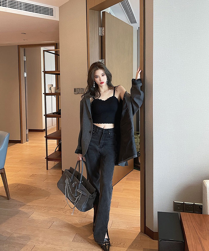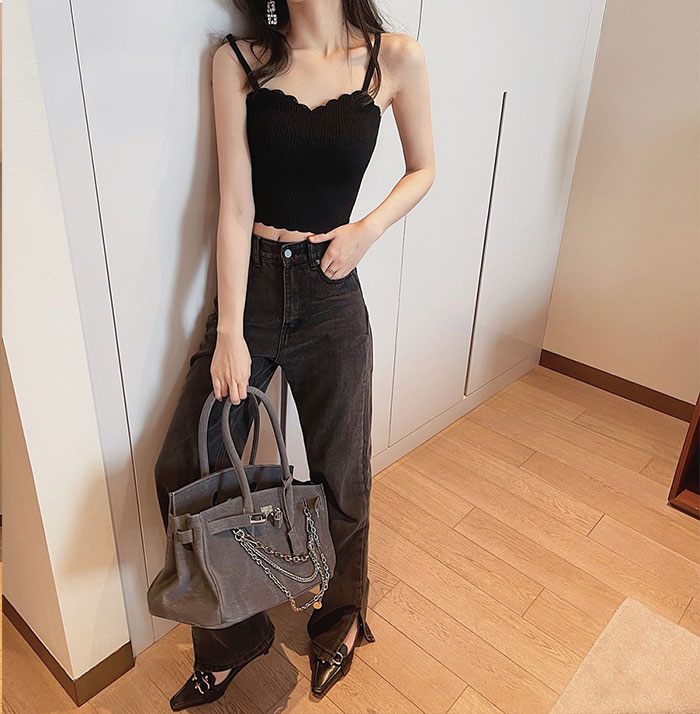 デニムパンツ ビジュー付き