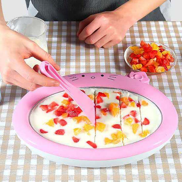 アイスクリームロールトレイは食品グレードのステンレス鋼で作られ、スクレーパーは食品グレードのPP素材で作られており、安全で耐久性があり、環境に優しいです。