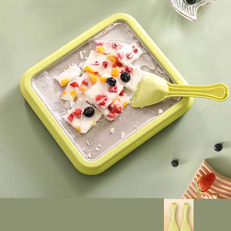 アイスクリームロールトレイは食品グレードのステンレス鋼で作られ、スクレーパーは食品グレードのPP素材で作られており、安全で耐久性があり、環境に優しいです。