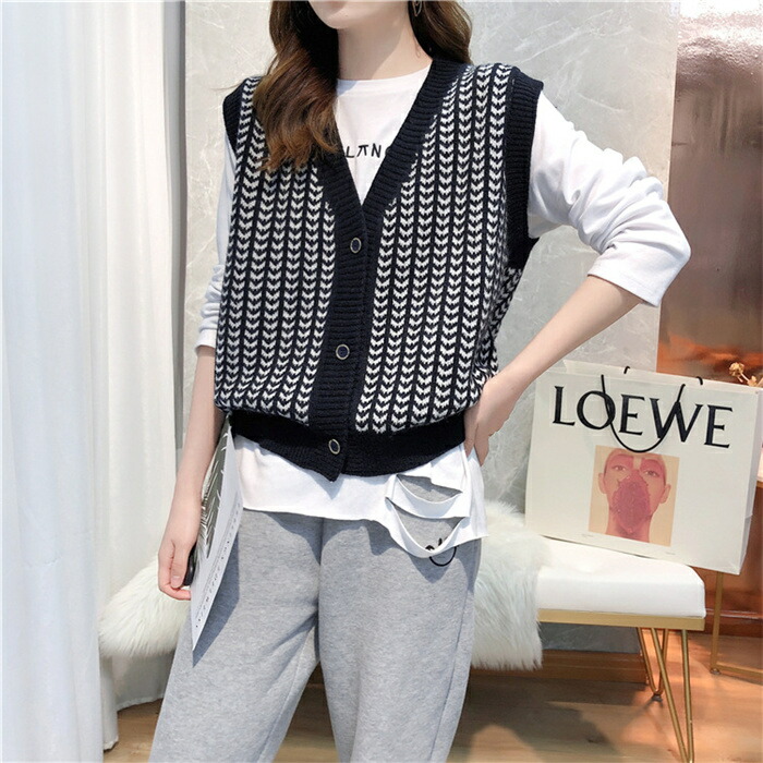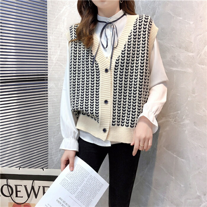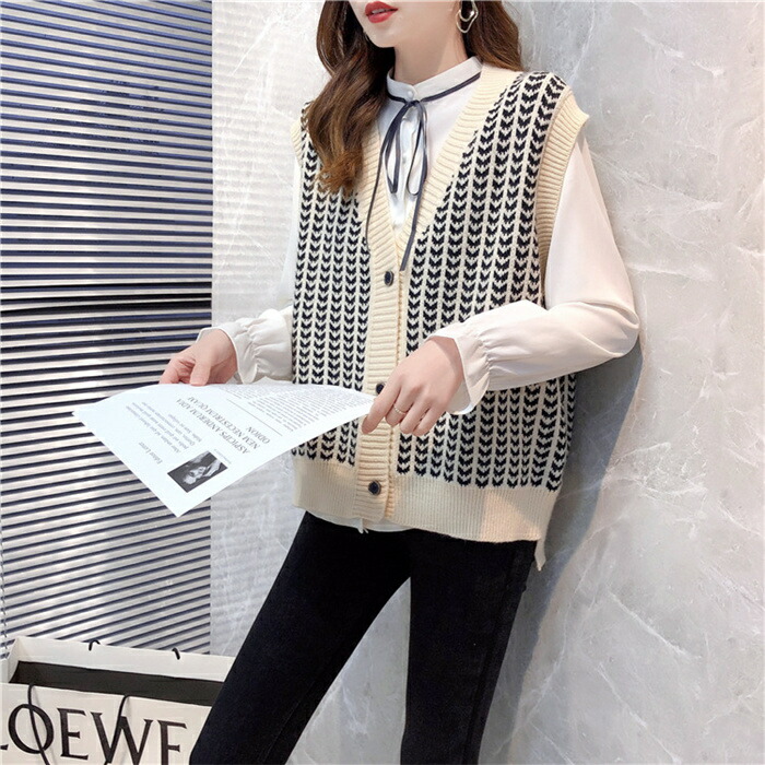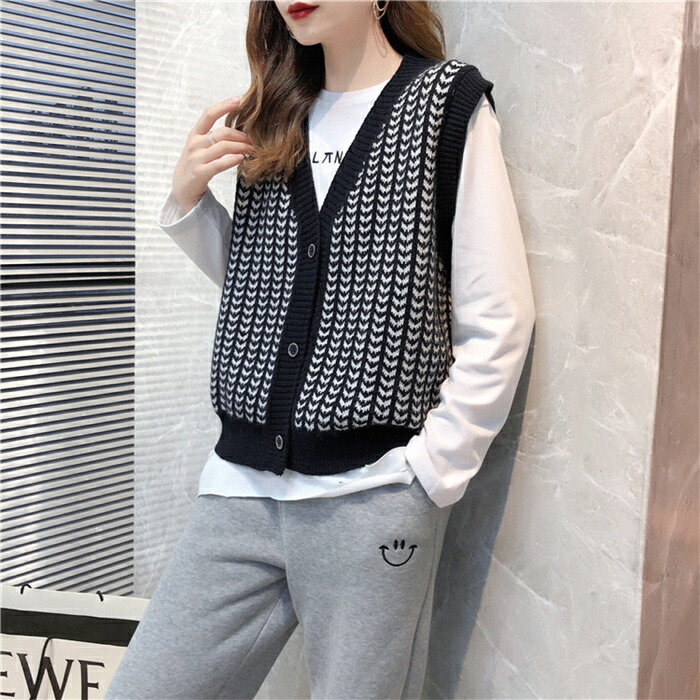 千鳥柄 ニット ベスト サマー ベスト