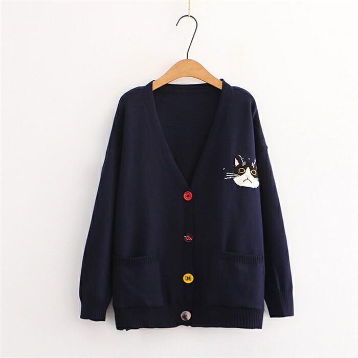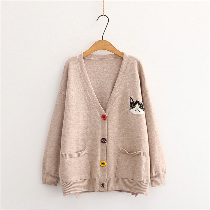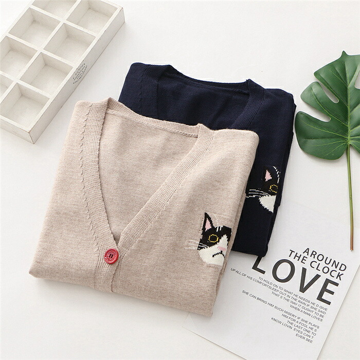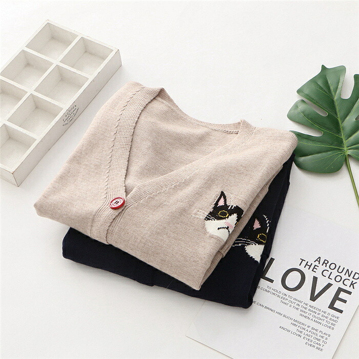 猫柄 刺繍 カーディガン 秋 春 カー