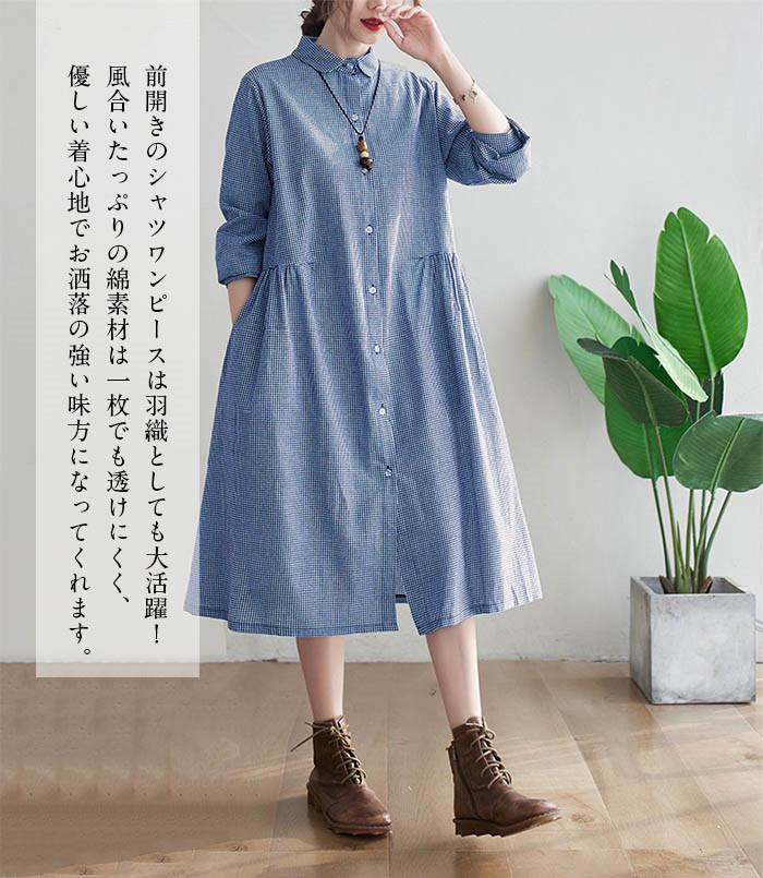 ワンピース 長袖 シャツワンピース ロ