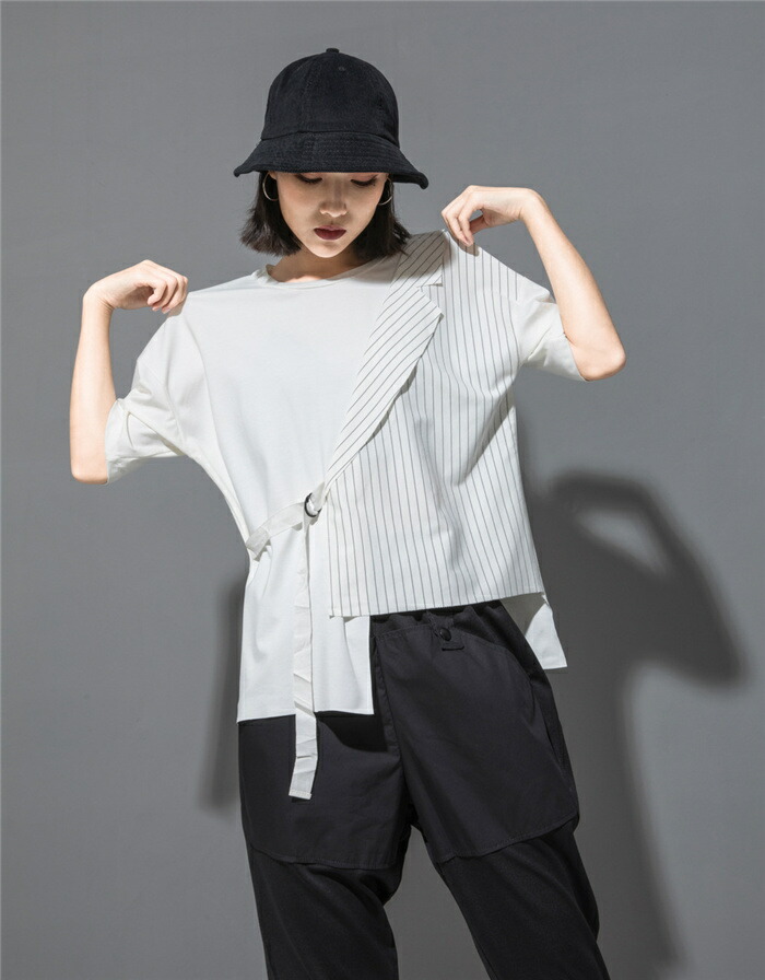シアースリーブ ドッキングシャツ ボウタイシャツブラウス