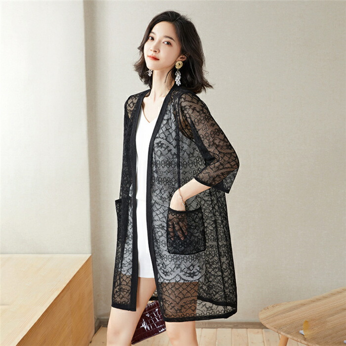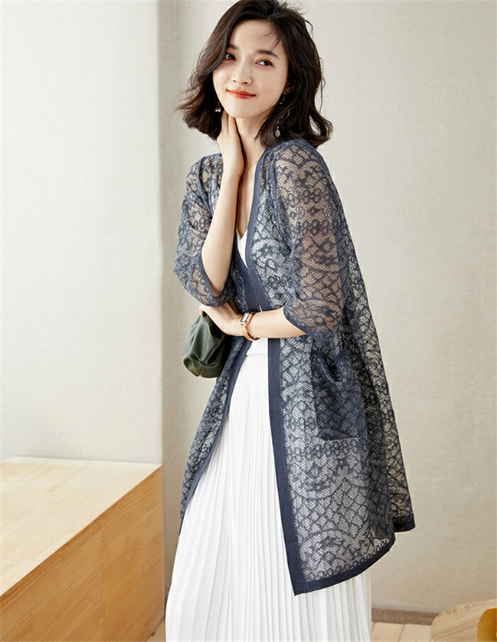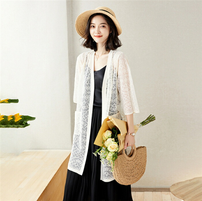 透かし編み カーディガン 羽織り レデ