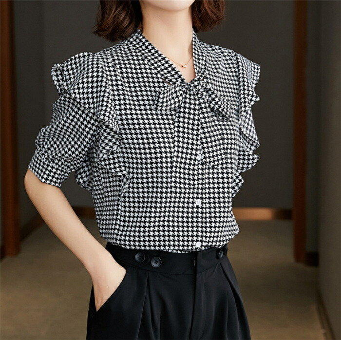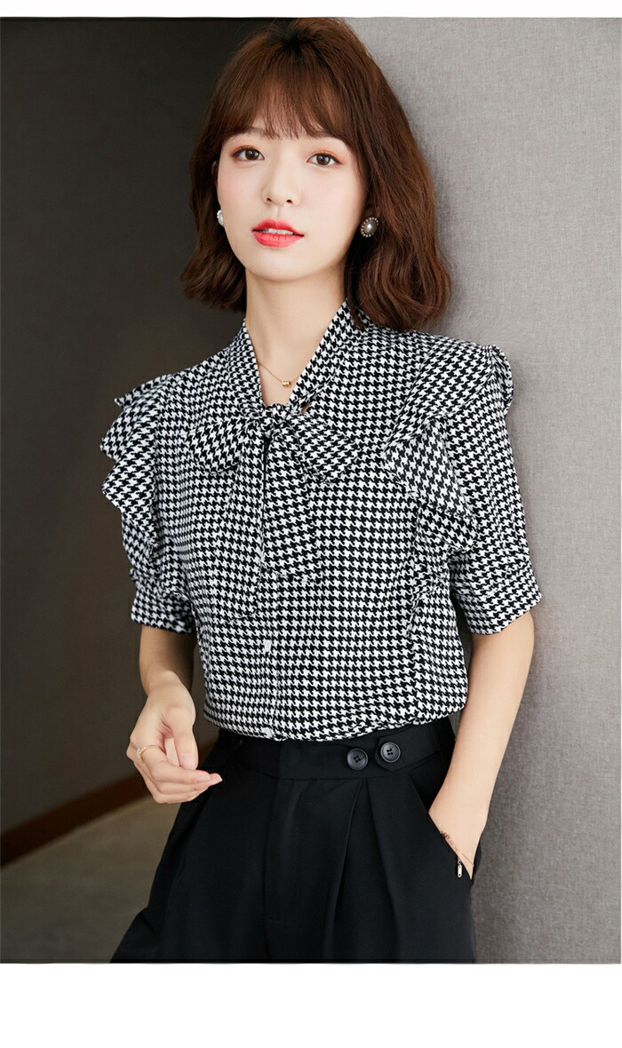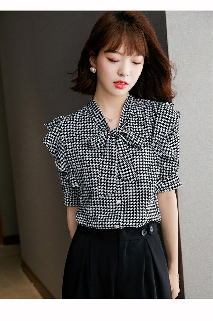 シアースリーブ ドッキングシャツ ボウタイシャツブラウス