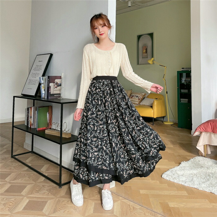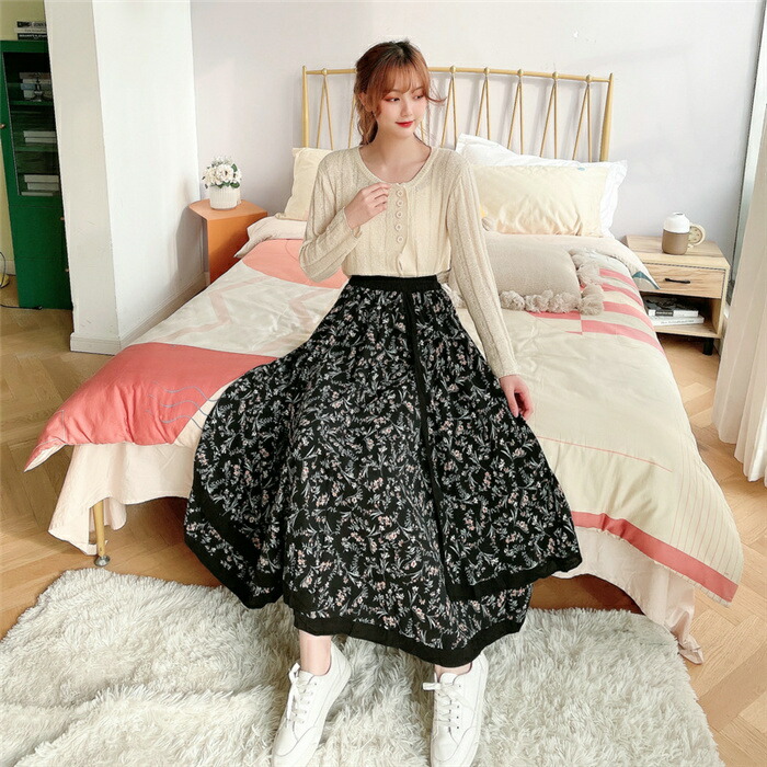 総柄 フレアスカート aラインスカート