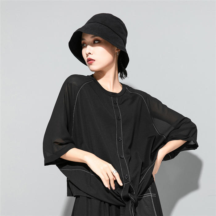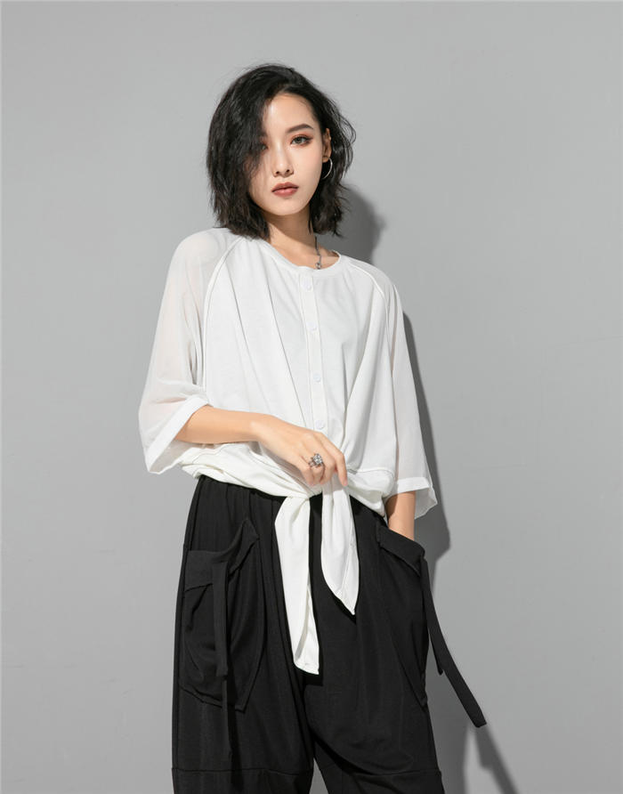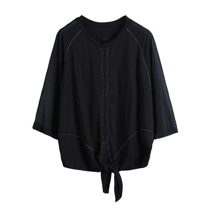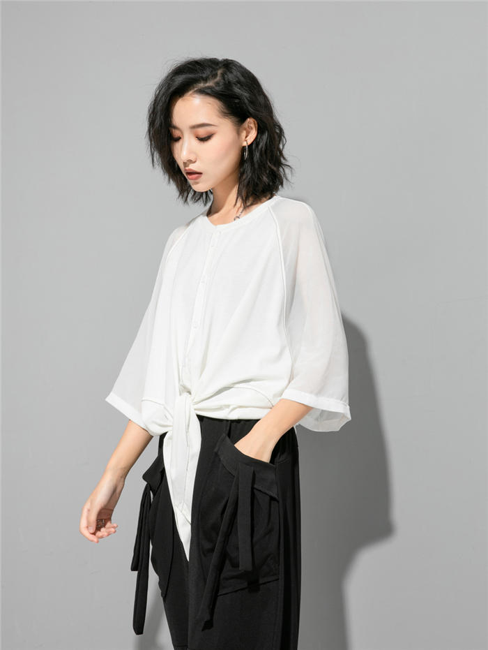 シアースリーブ ドッキングシャツ ボウタイシャツブラウス