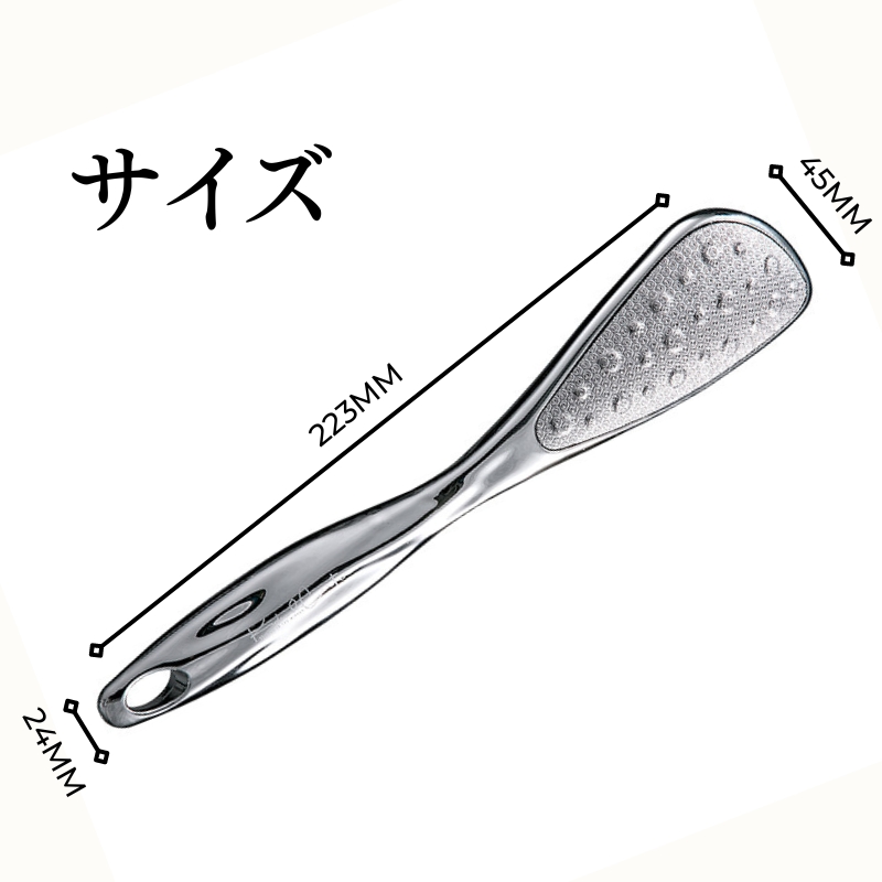 商品詳細商品名 かかとやすりサイズ 45*24*223mm素材 ABS+ステンレス鋼色 シルバー、ピンクゴールド生産国 MADE IN PRC
