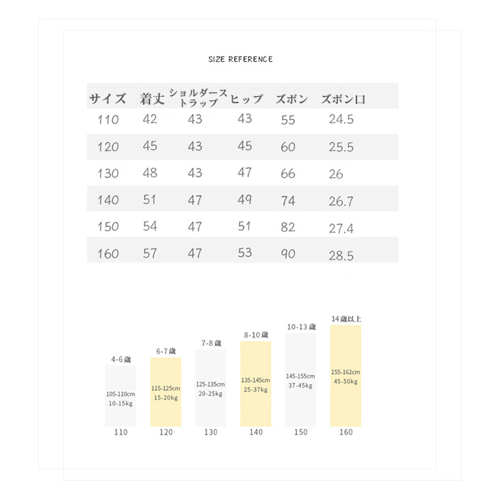 vertical-key: 120cm 130cm 140cm 150cm 160cm/M 170cm/L
