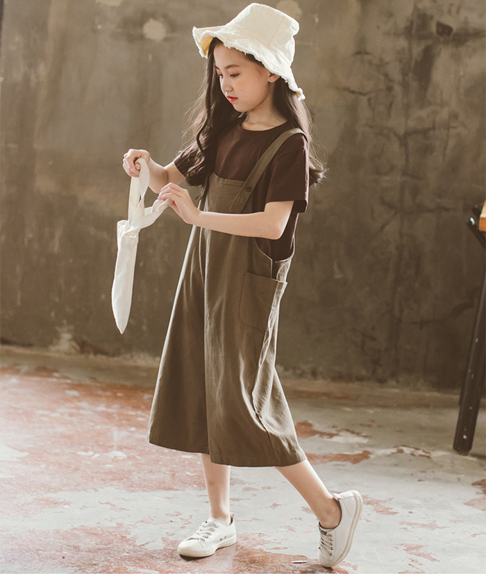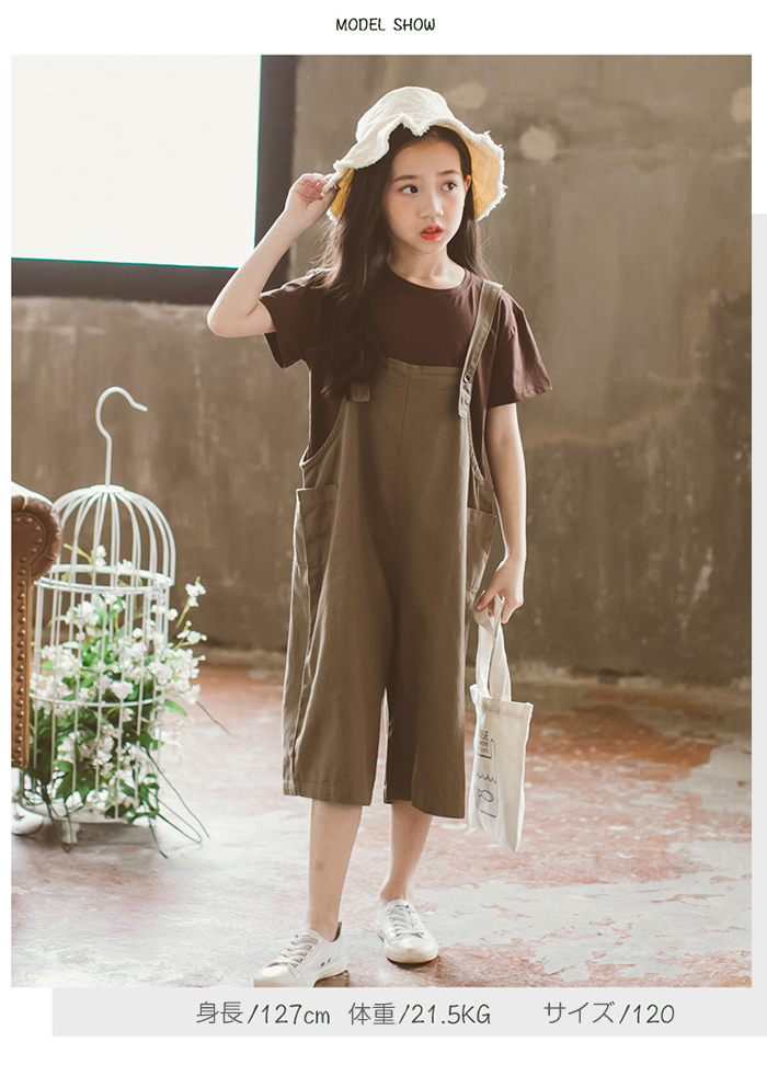オーバーオール 森ガール 7分丈 ワイ
