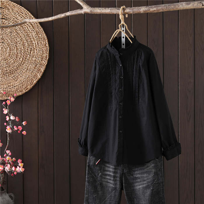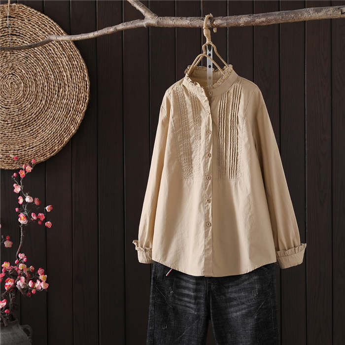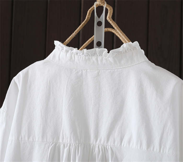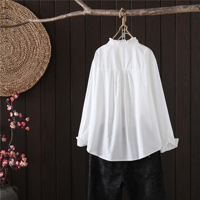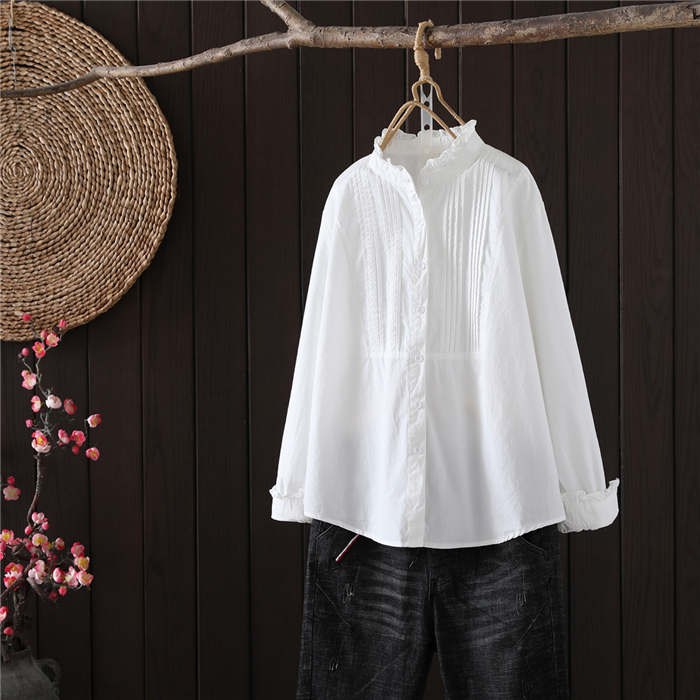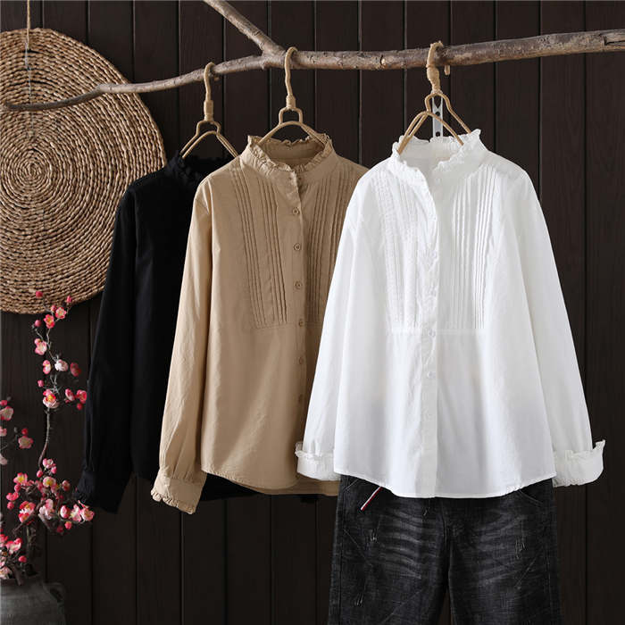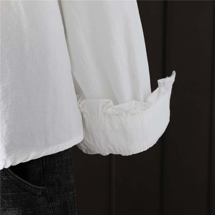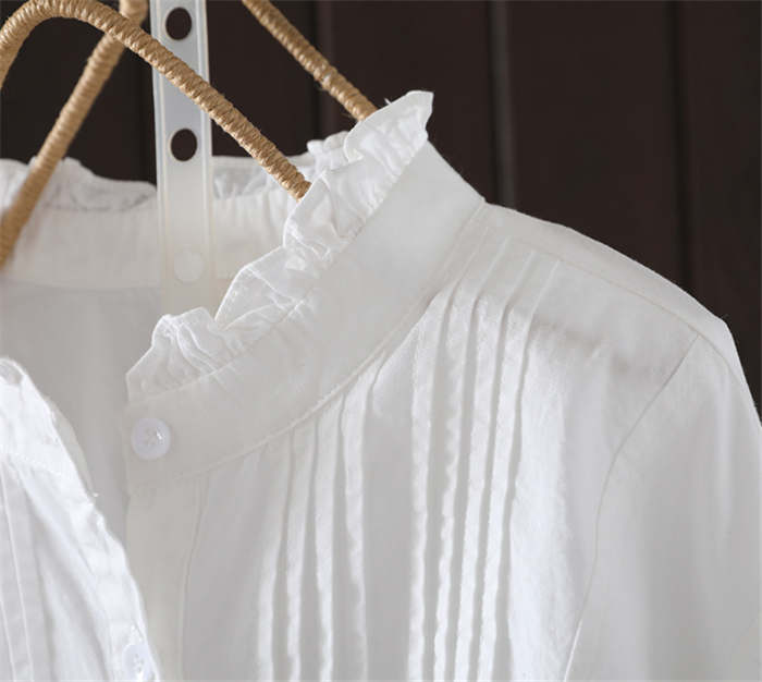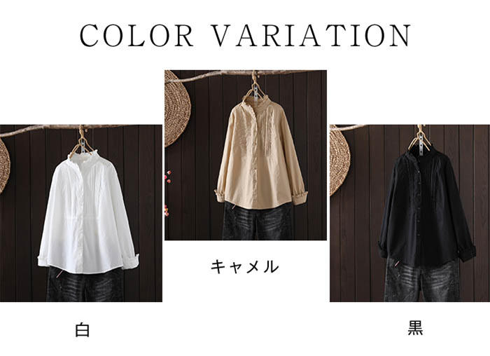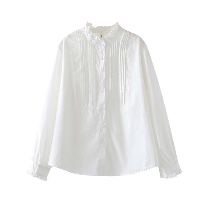 フリル襟 シャツ ブラウス 長袖 立ち