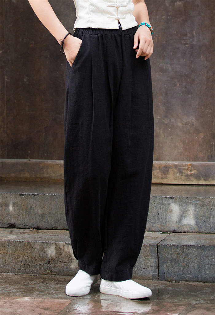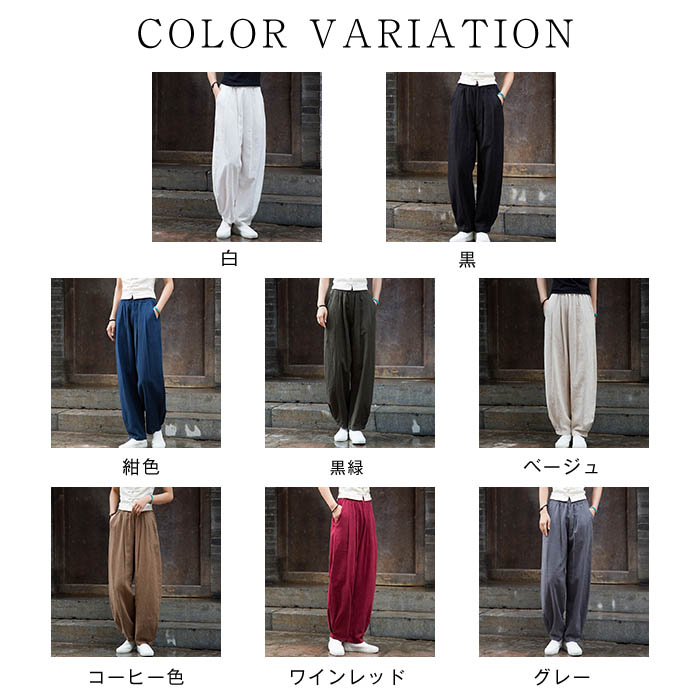 リネンパンツ レディース 春 夏 タッ