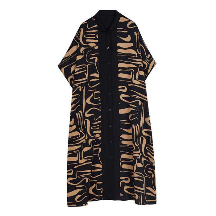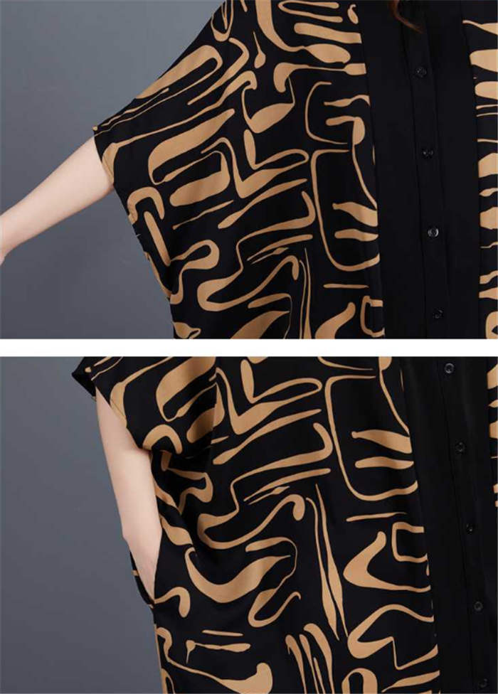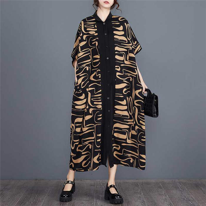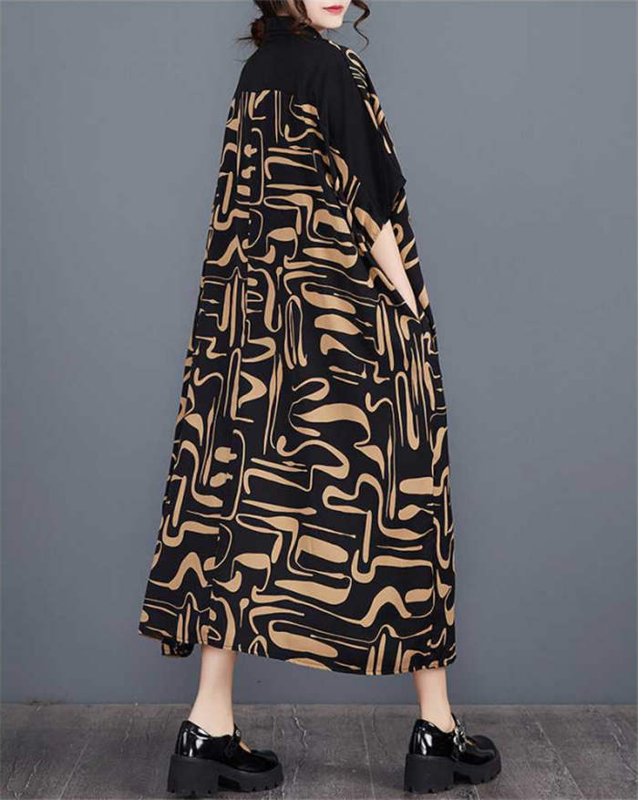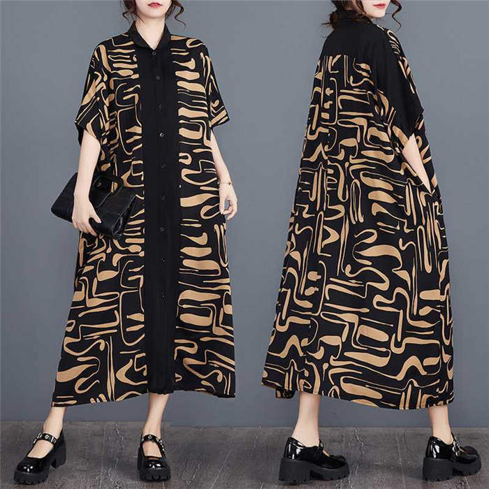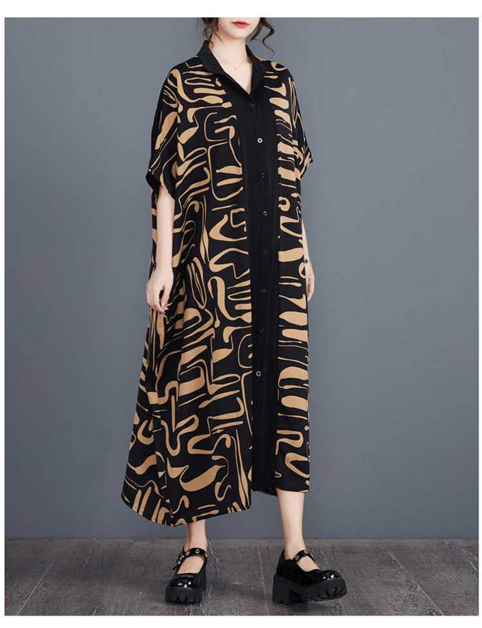 キーワード シャツ ワンピース レディース 夏 半袖 ロングワンピース ロング丈 丸襟 ビッグシルエット シャツワンピース ゆったり ゆる カジュアル オシャレ ファッション オーバーサイズ 大きいサイズ 体型カバー 幾何柄 総柄 30代 40代 50代 ドルマンスリーブ 送料無料