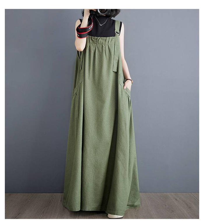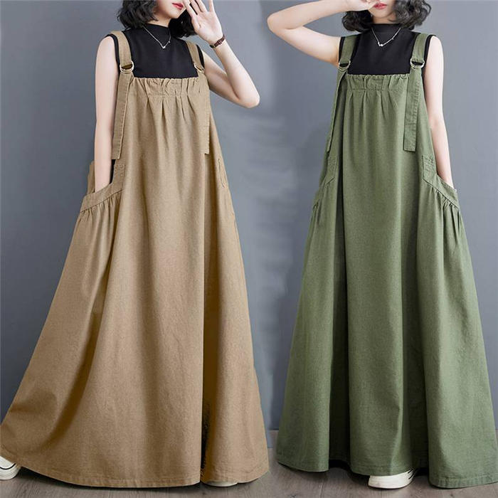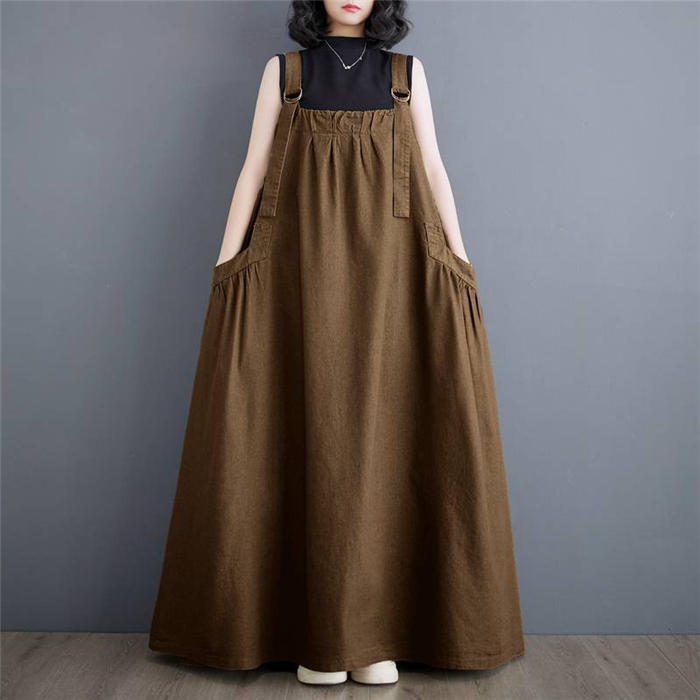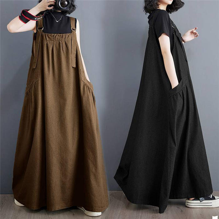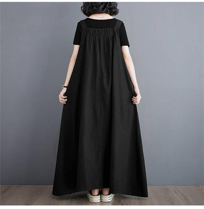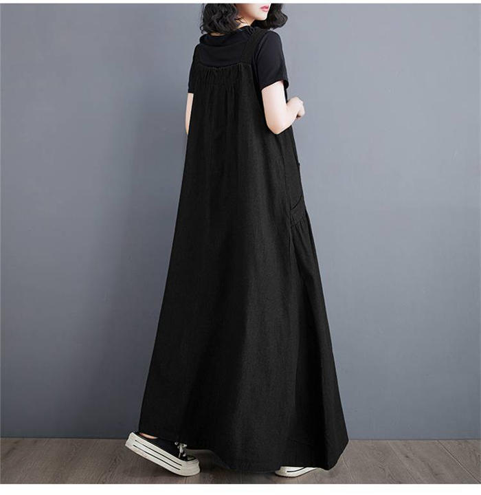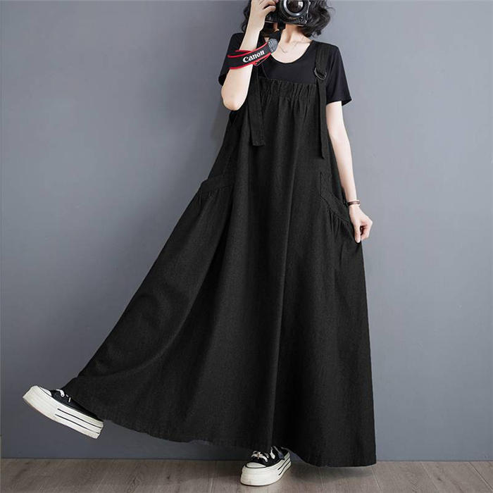 ジャンパースカート 大人 ロング 黒