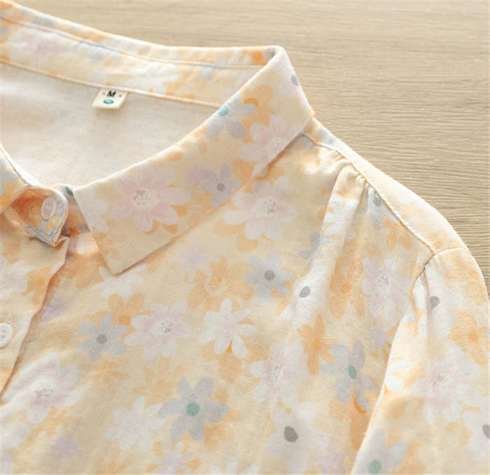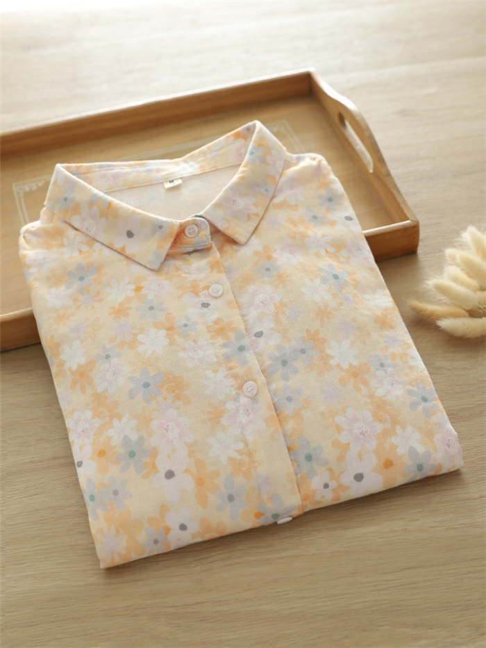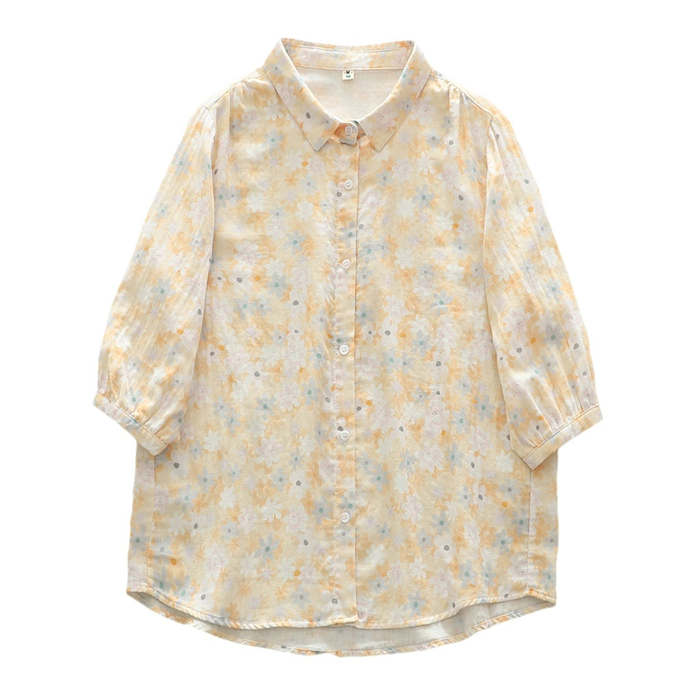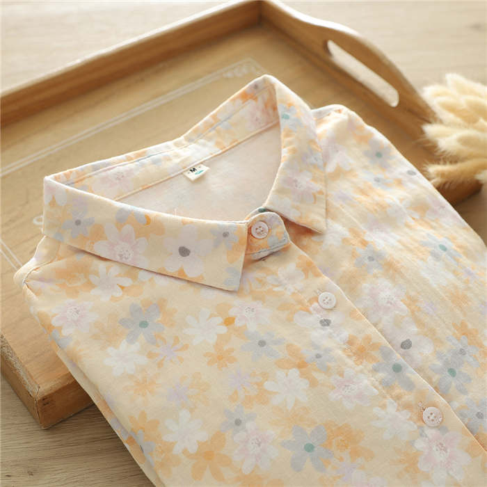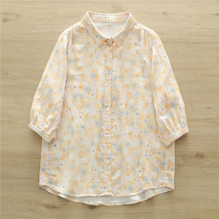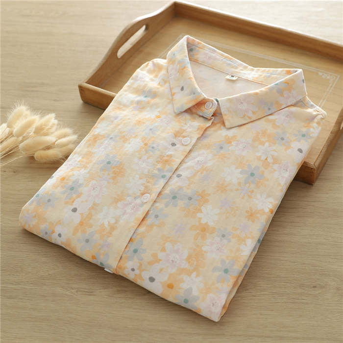 総柄 ガーゼ シャツ レディース 2重