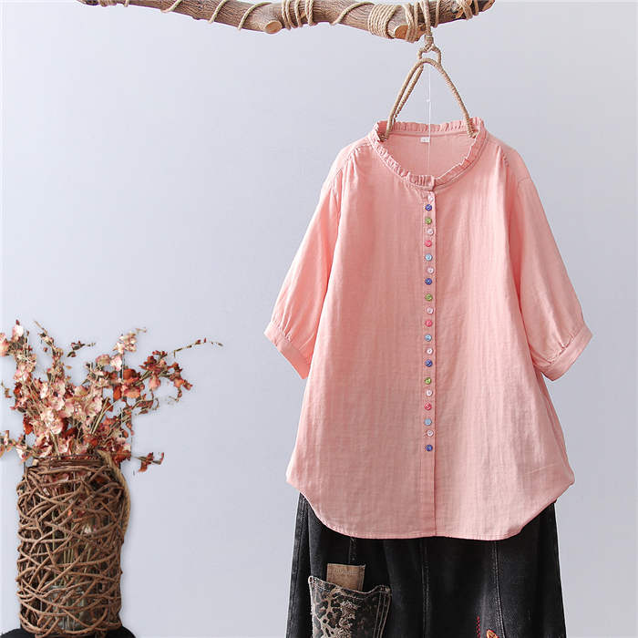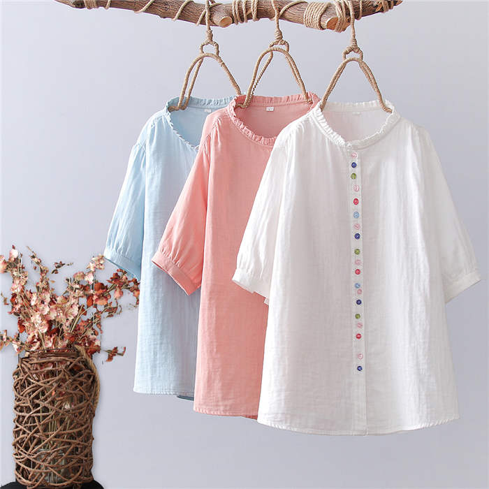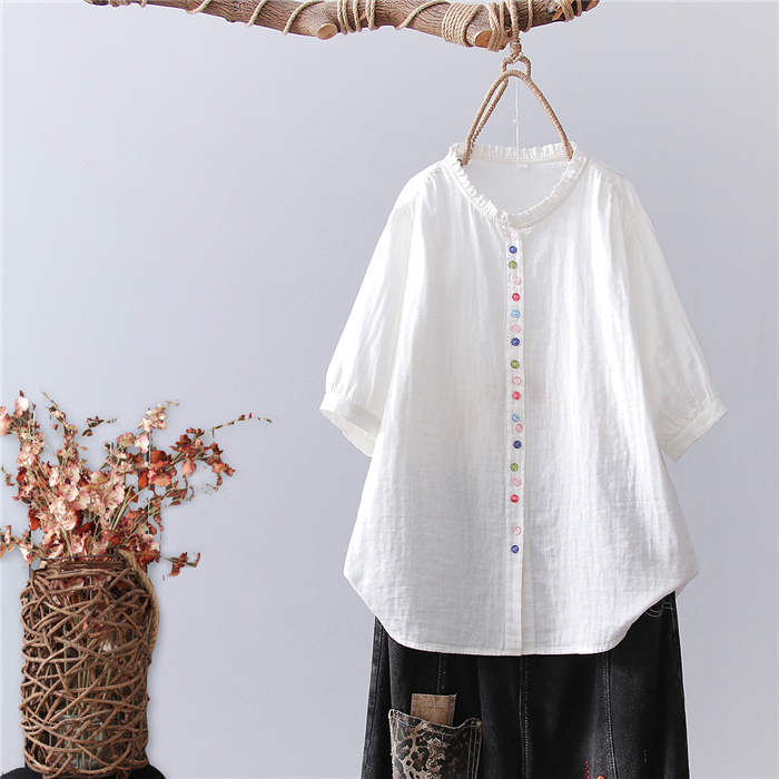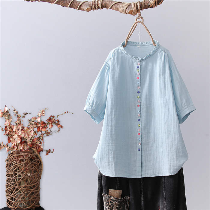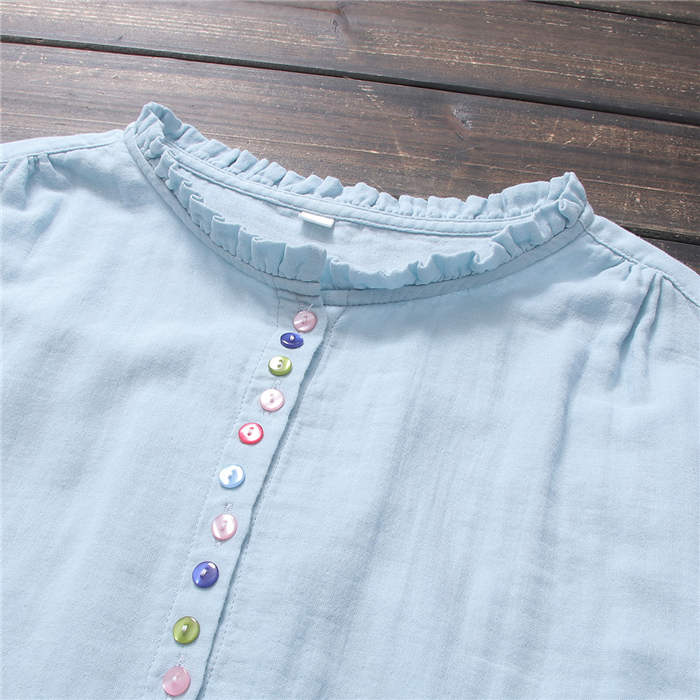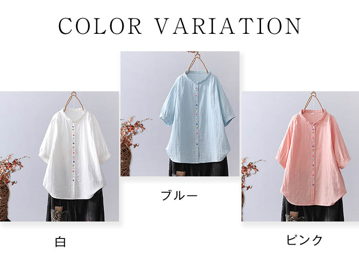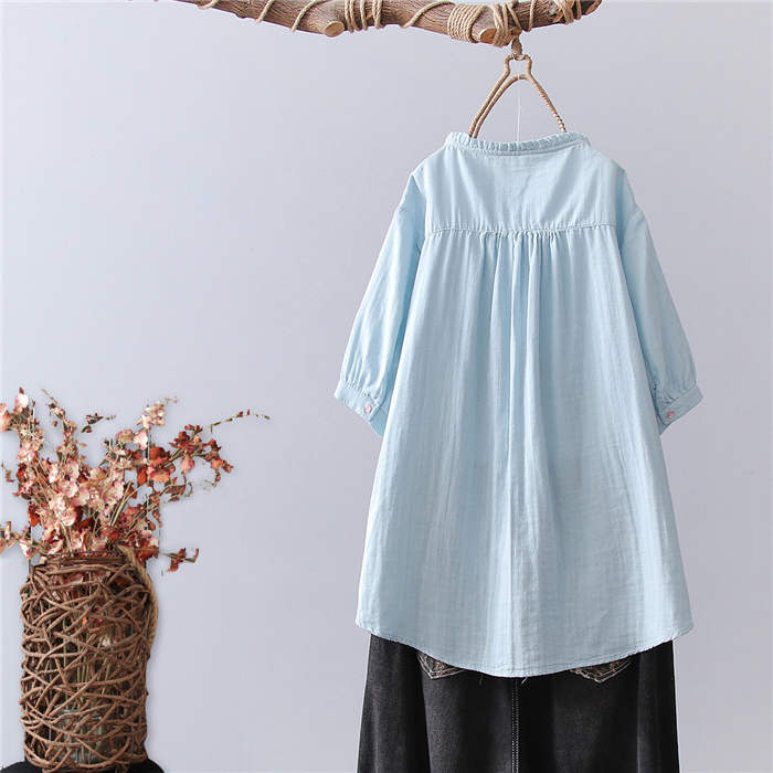 フリル襟 ガーゼ シャツ 2重ガーゼ