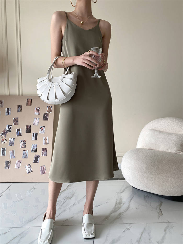キャミソールワンピース サテン風 キャ