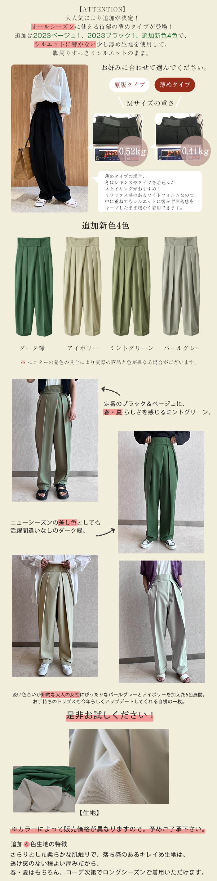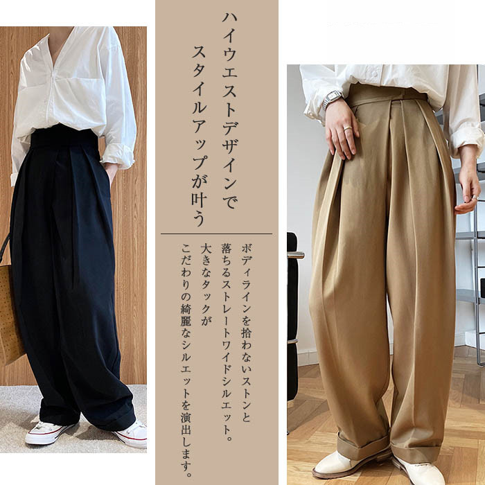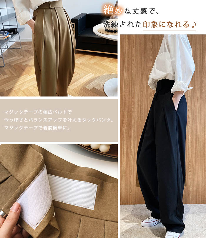 タックワイドパンツ レディース 春夏
