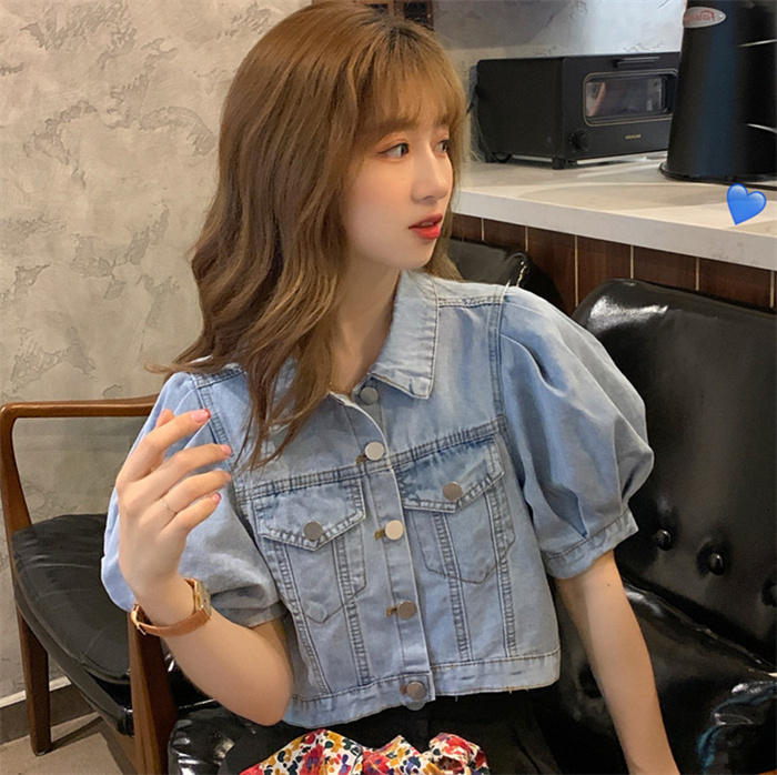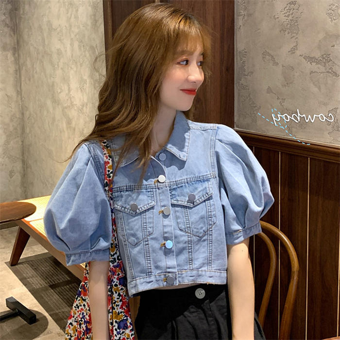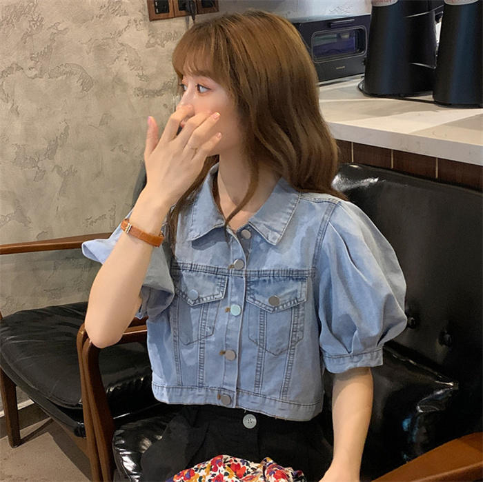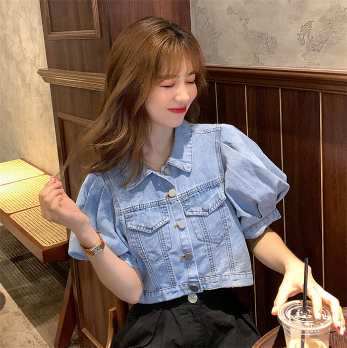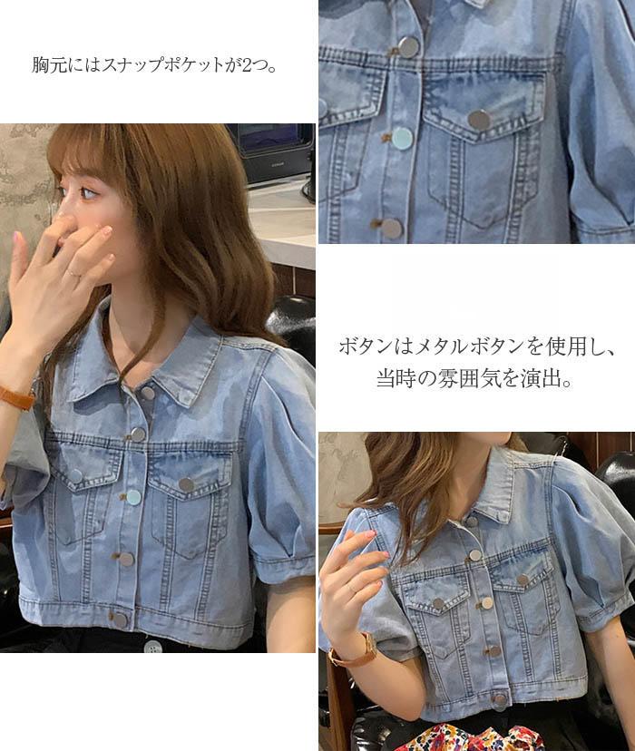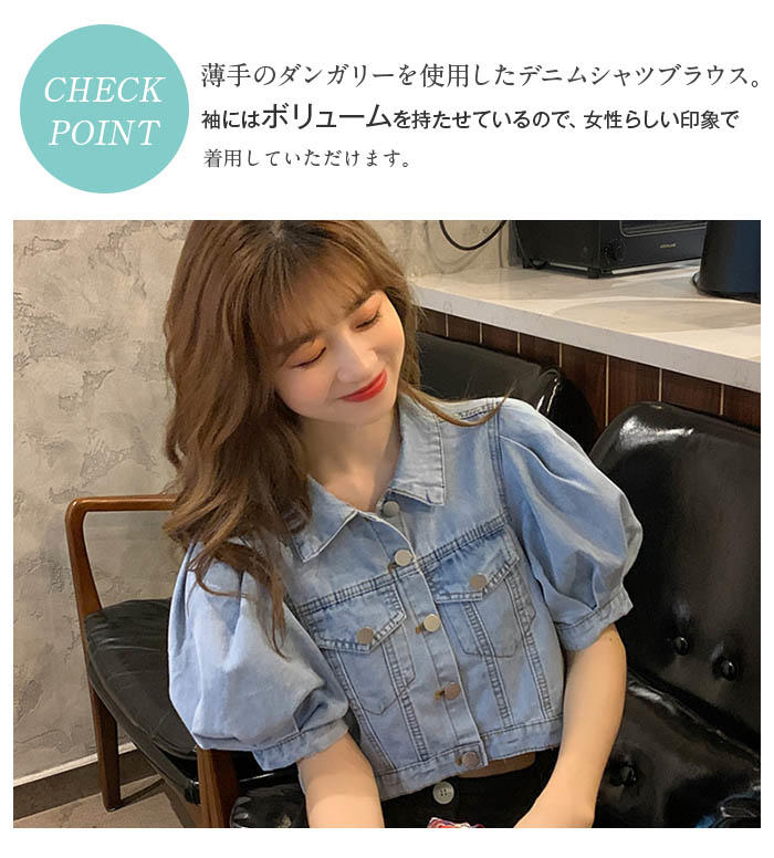 デニム ブラウス レディース パフスリ