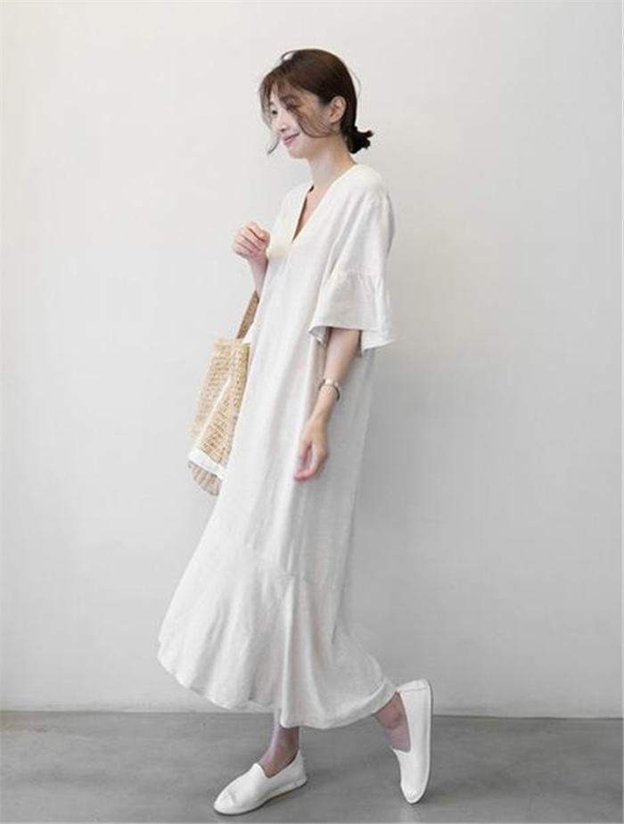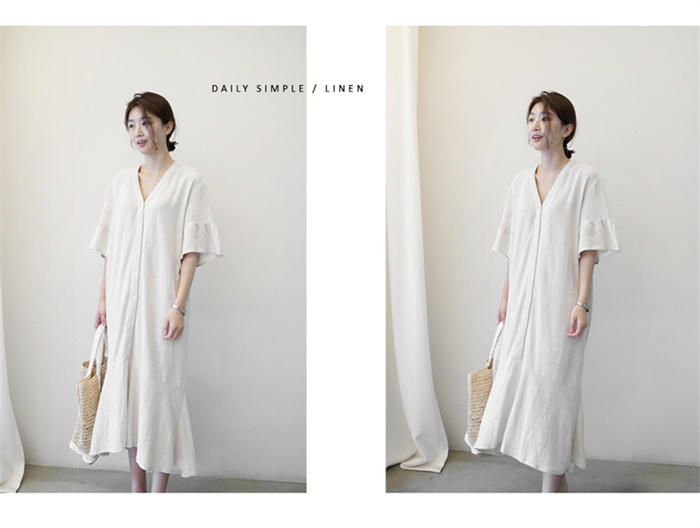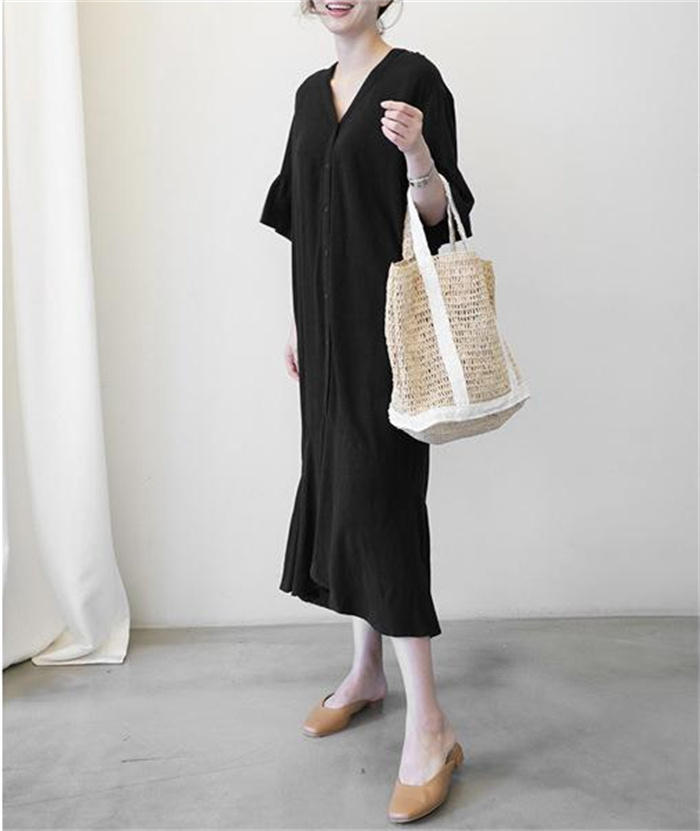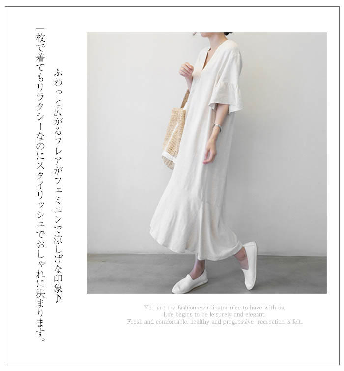 フレアワンピース 大きいサイズ 綿麻風