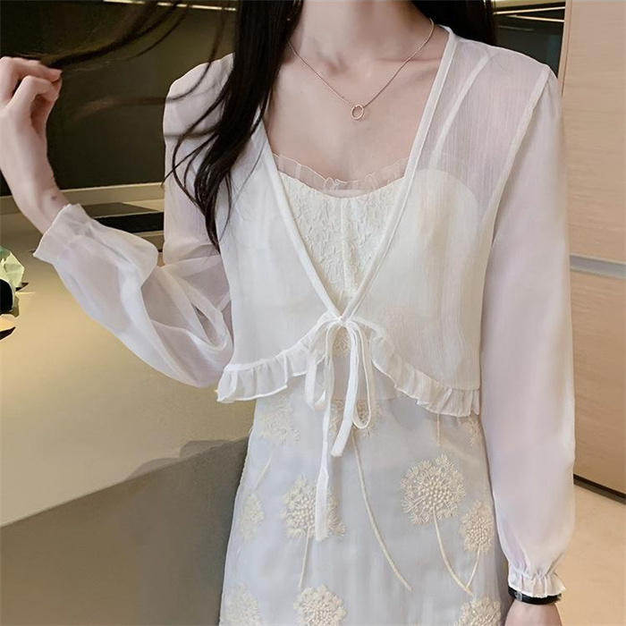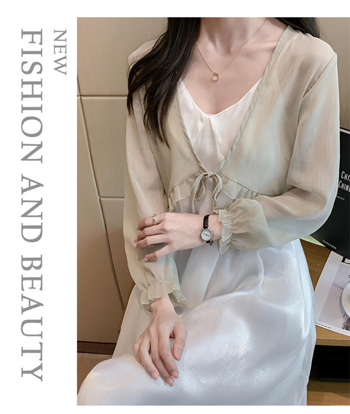 シアースリーブ ドッキングシャツ ボウタイシャツブラウス