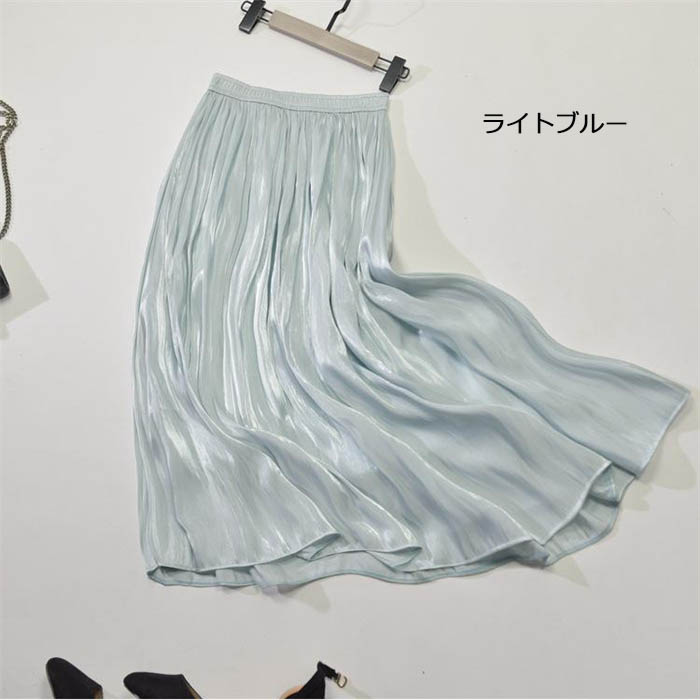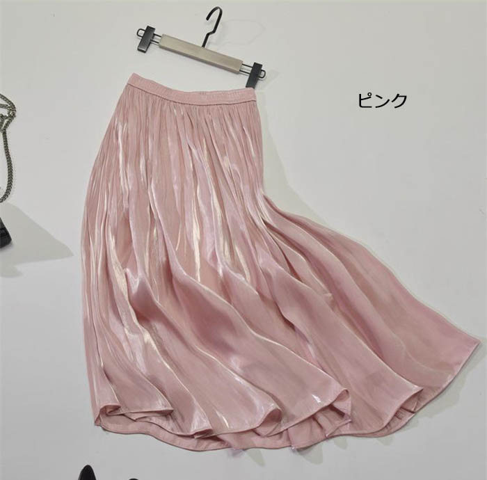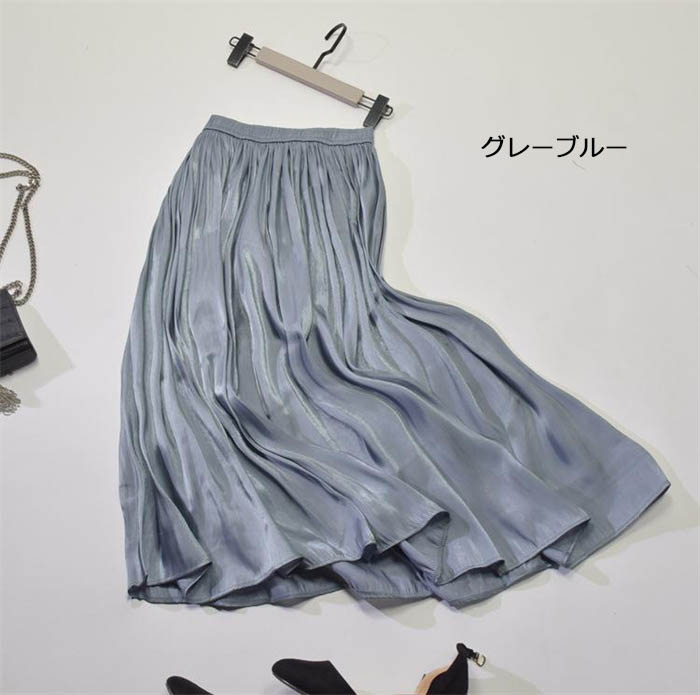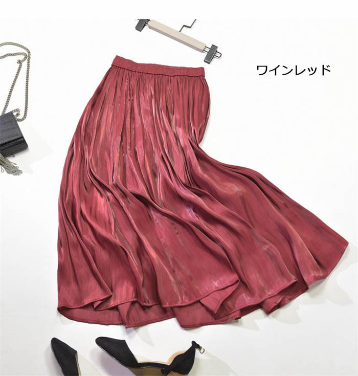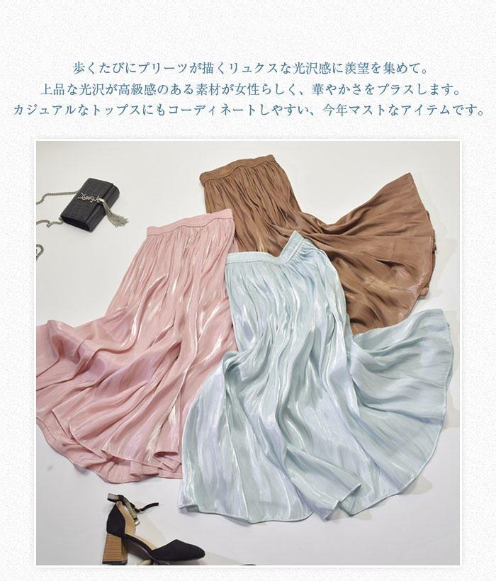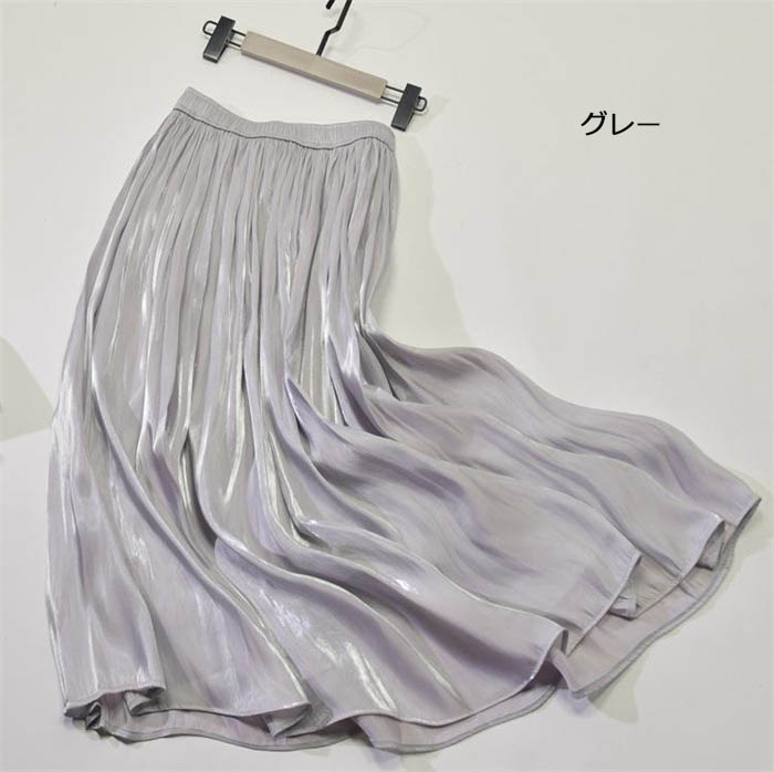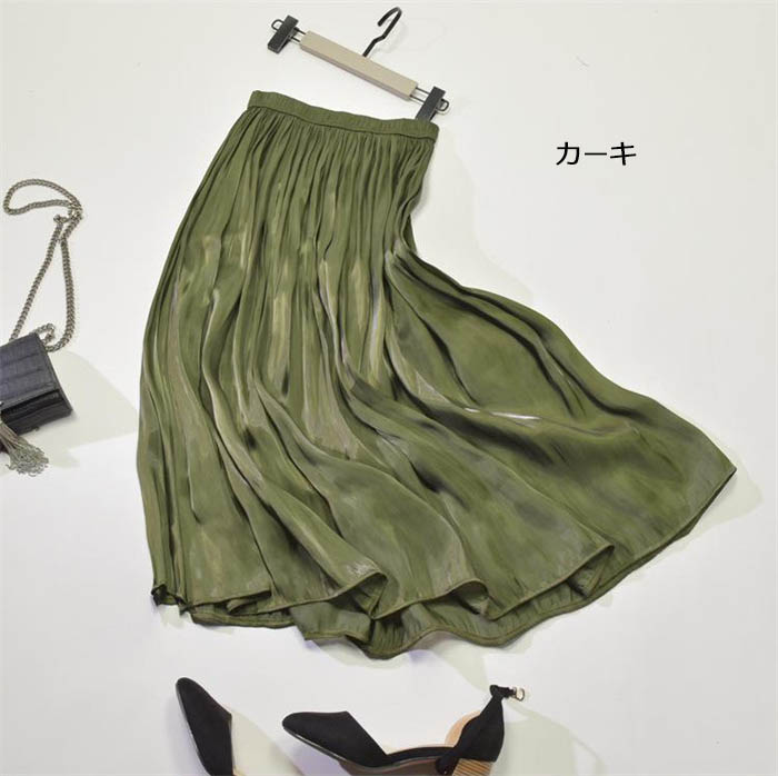 光沢感 プリーツスカート フレアスカー