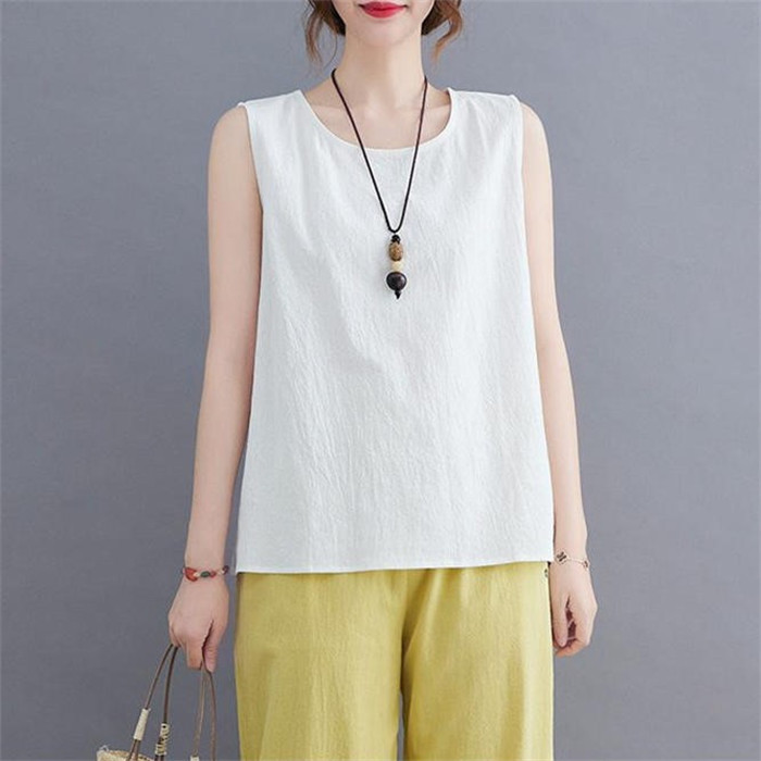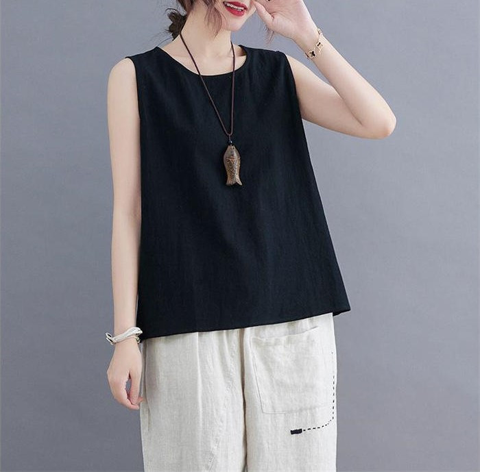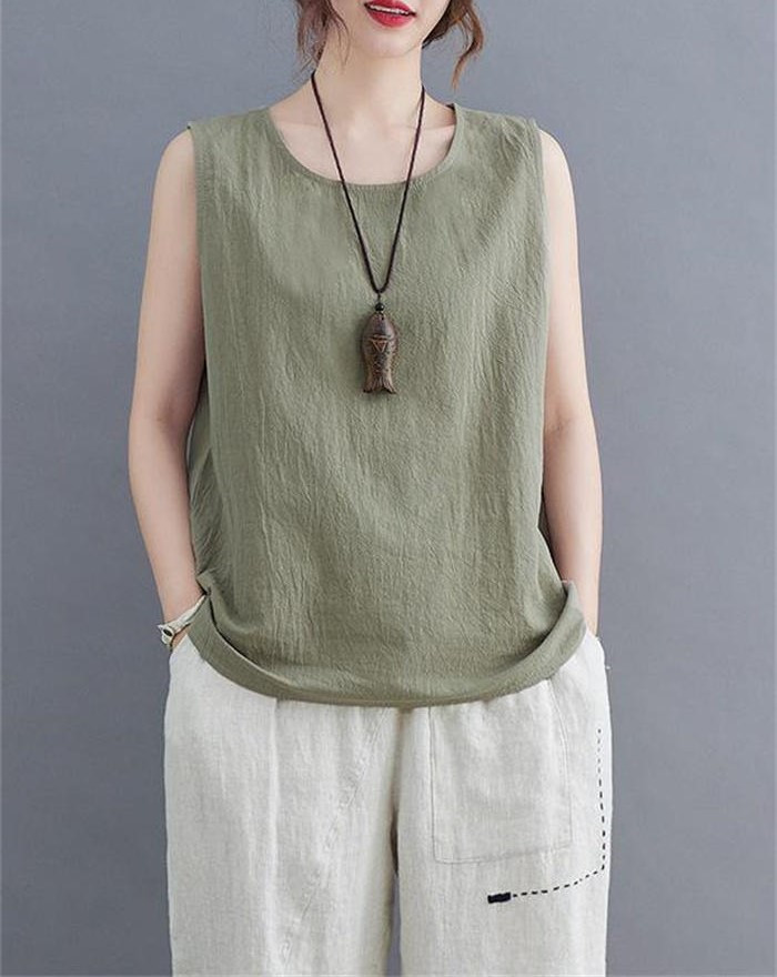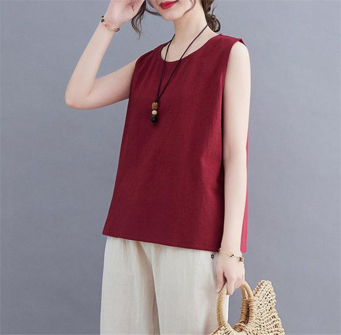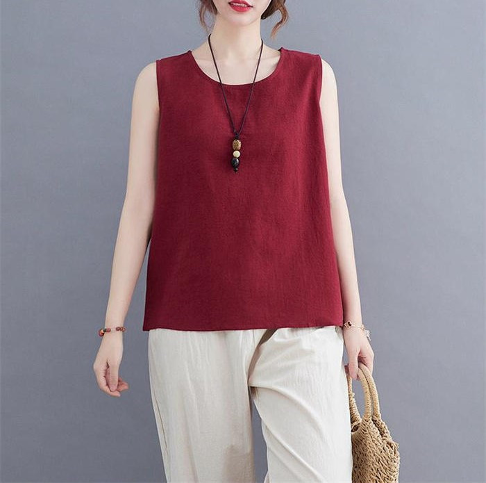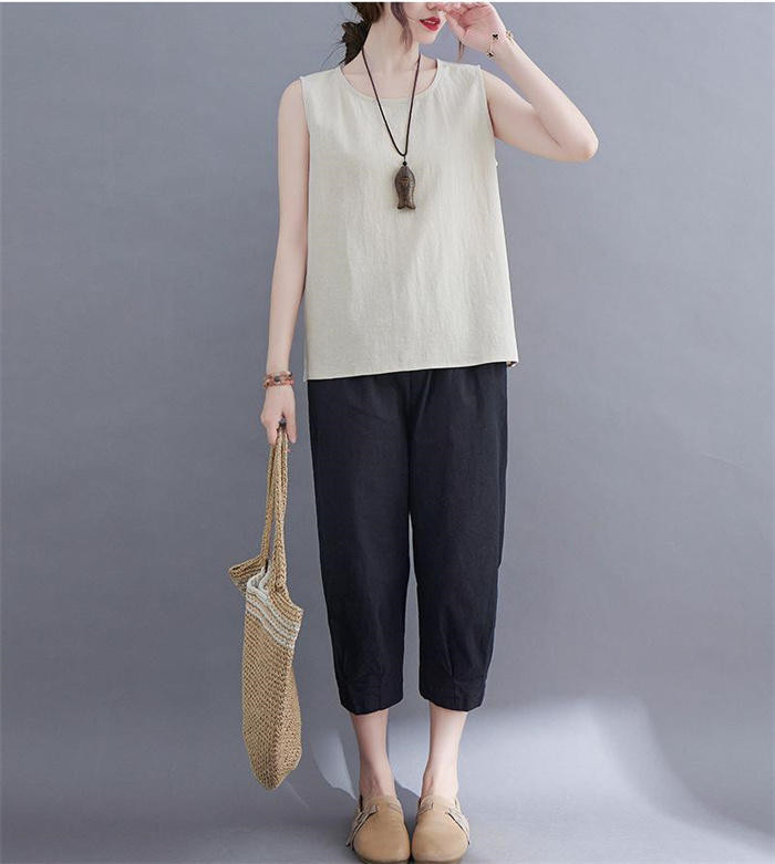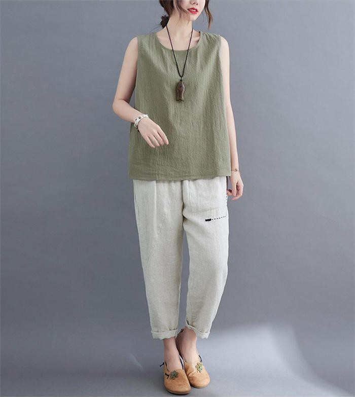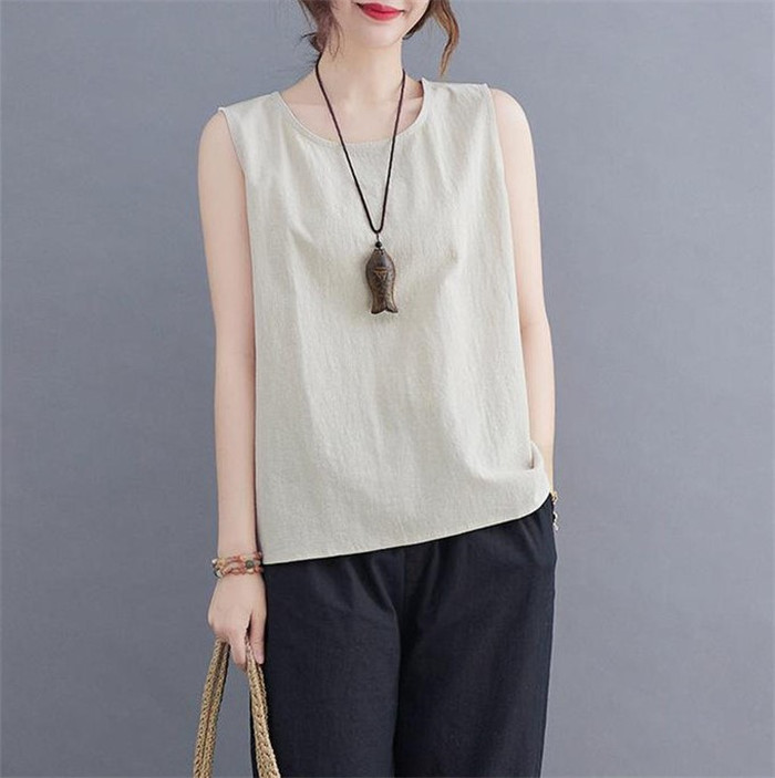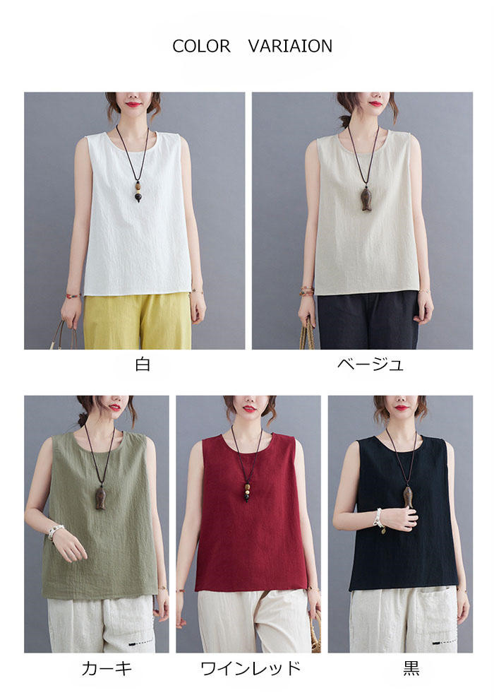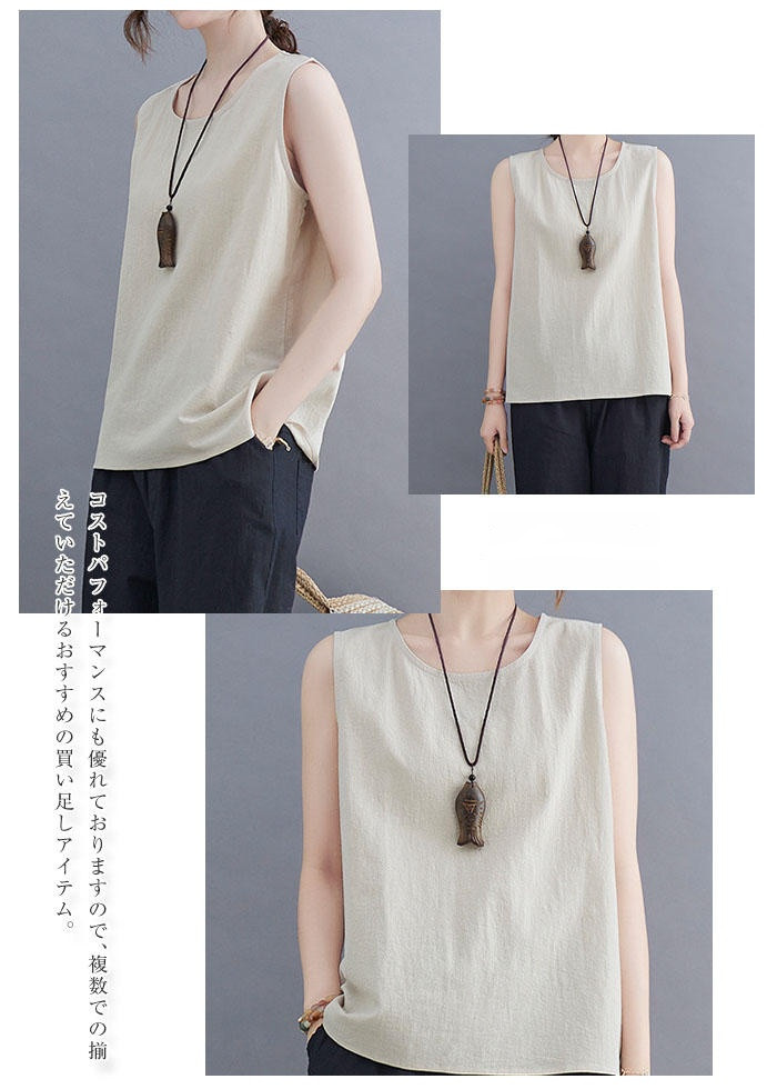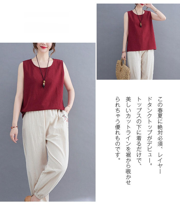 綿麻風 タンクトップ レディース タン