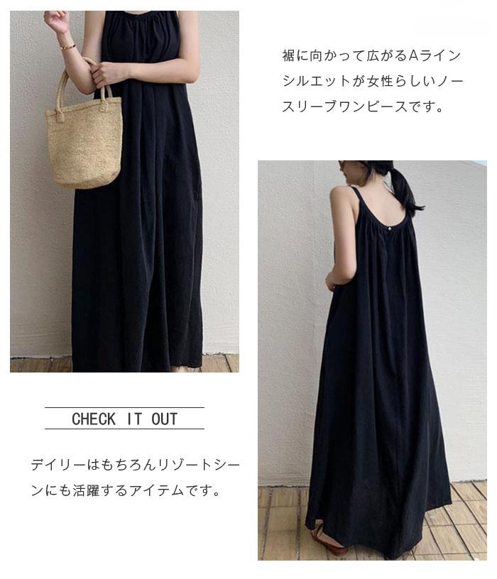 綿麻風 リネン キャミワンピース レデ