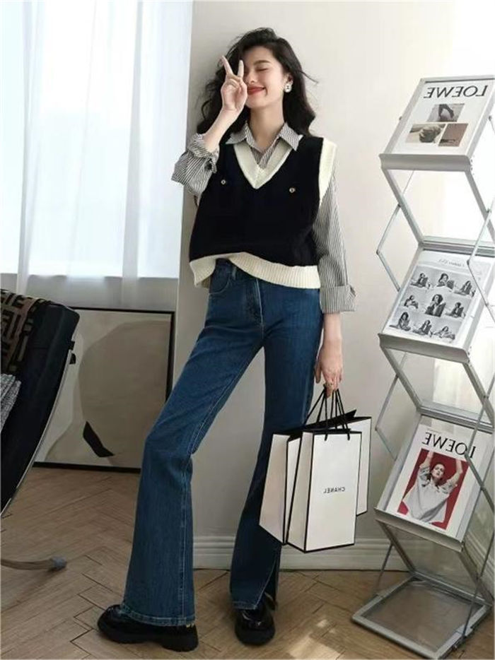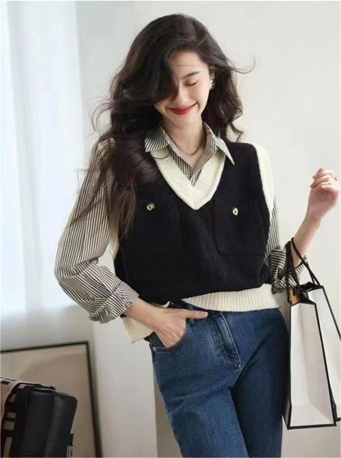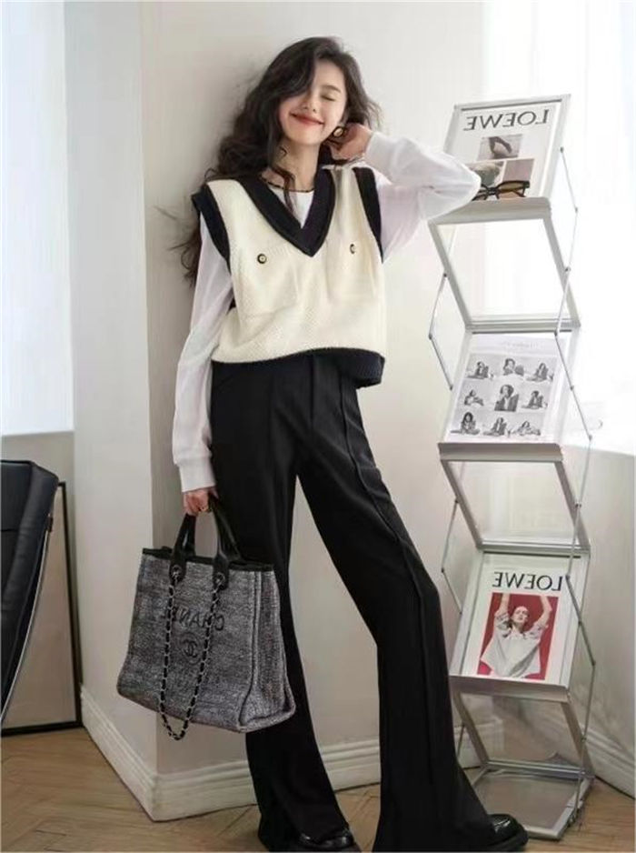 vネック ニット ベスト 秋冬 レディ