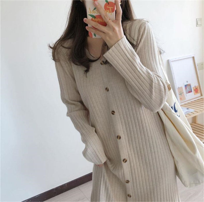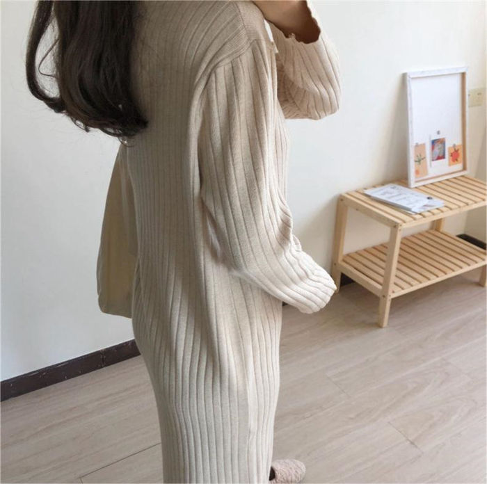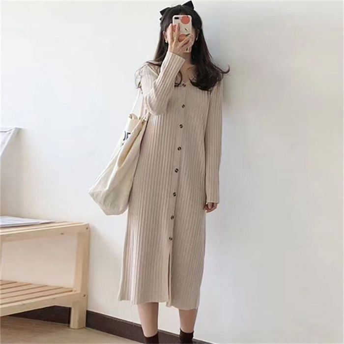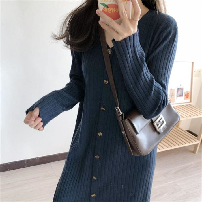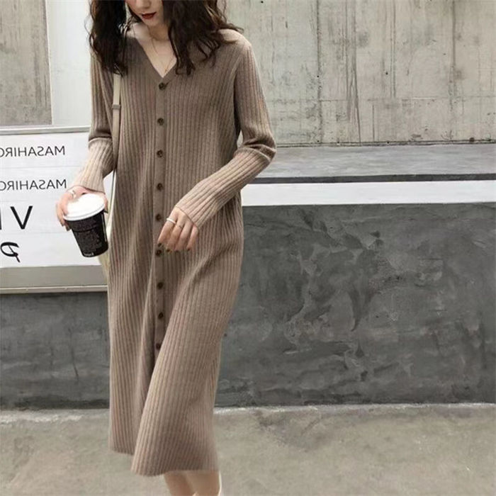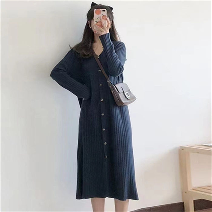 vネック ニットワンピース 冬 秋冬