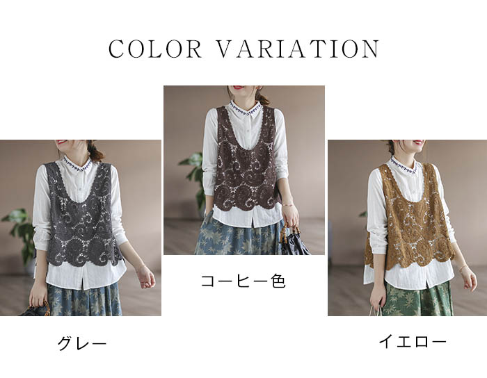 ベスト レディース Uネック プルオー