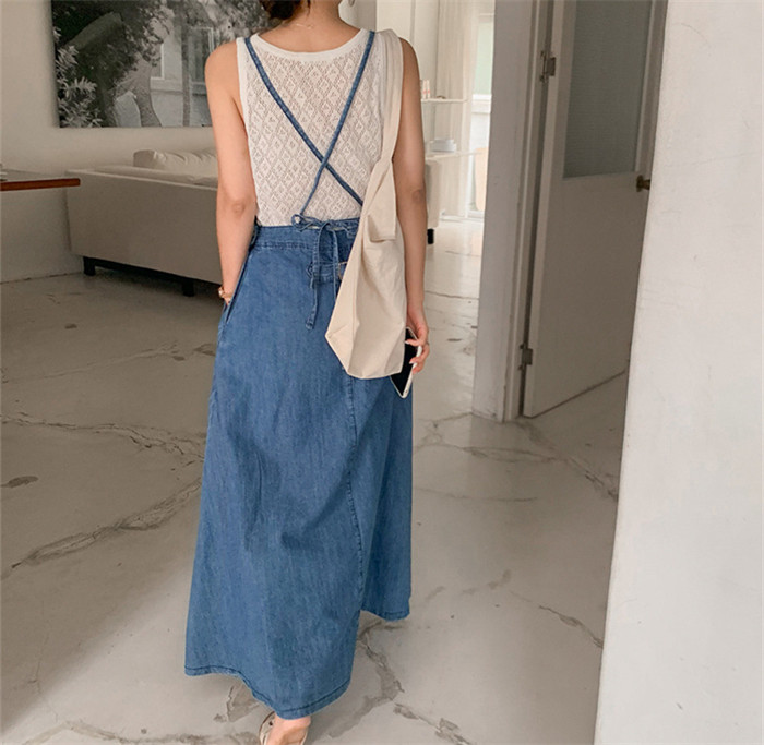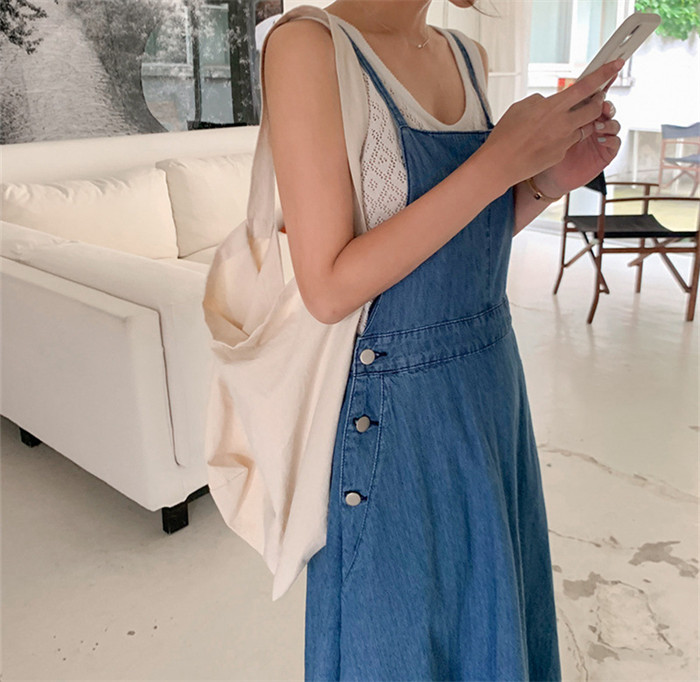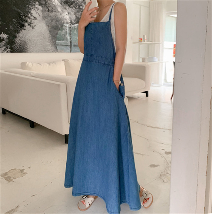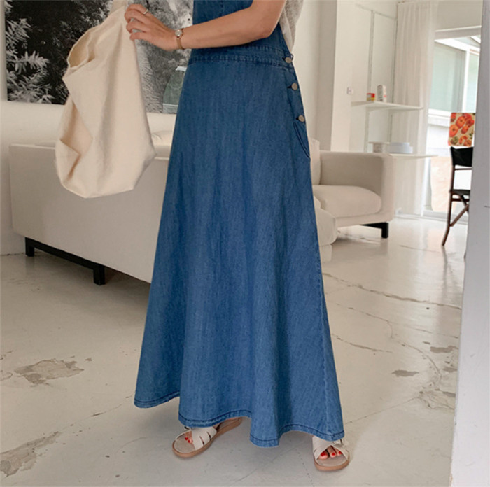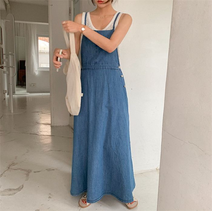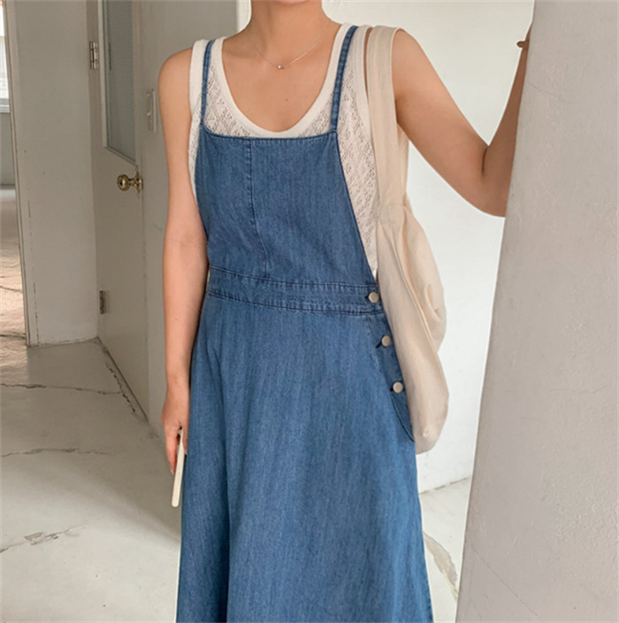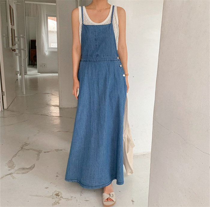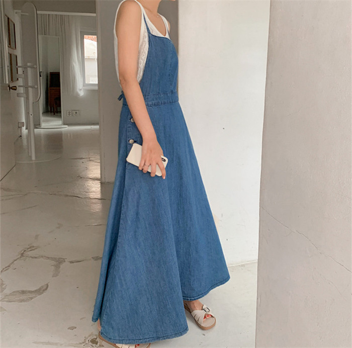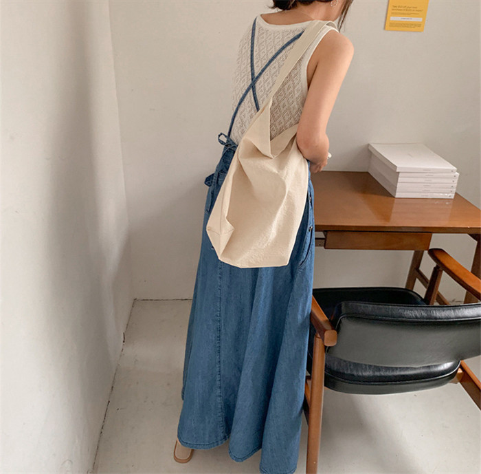 フレア デニム ジャンパースカート デ