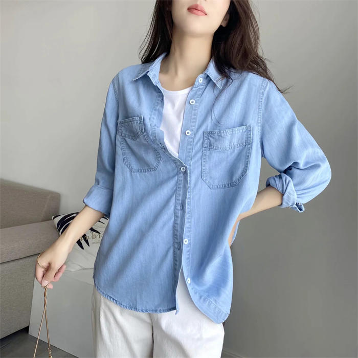 シャツ テンセルデニム 長袖 半袖 春