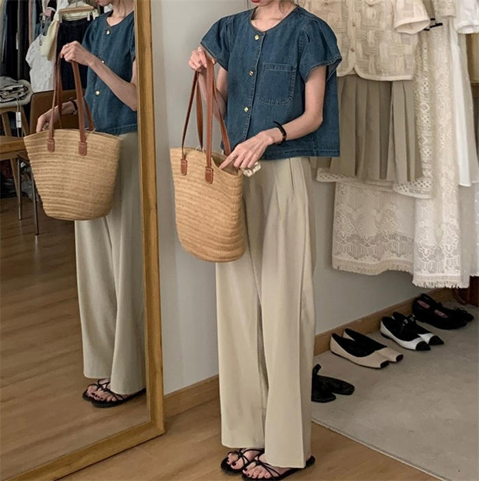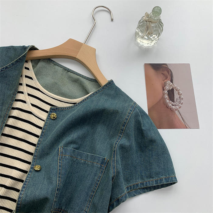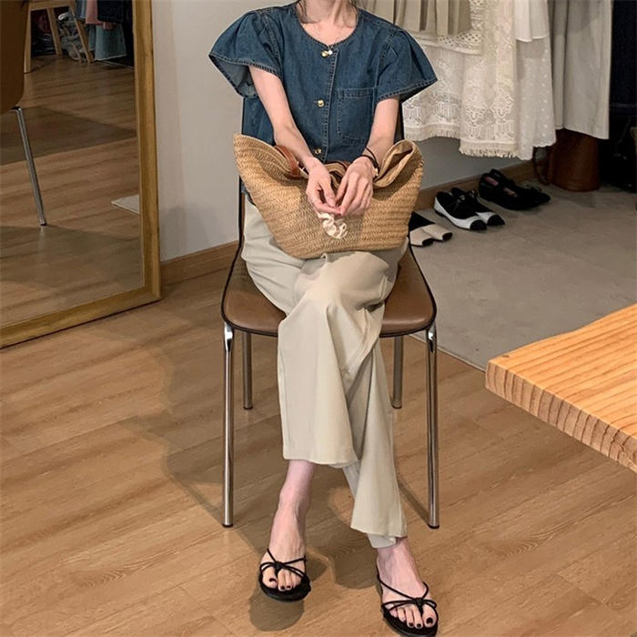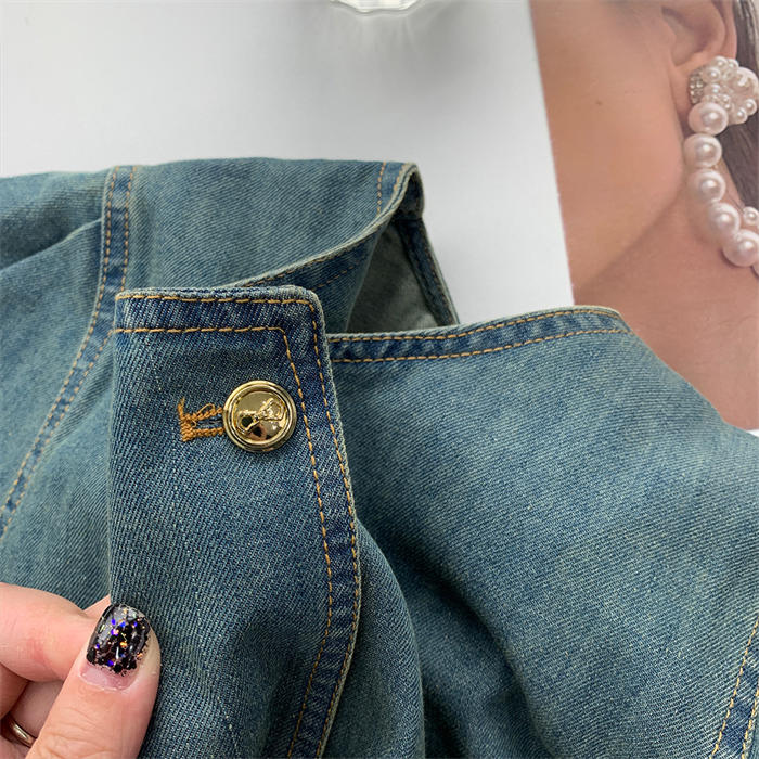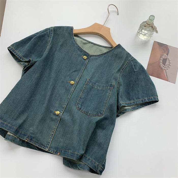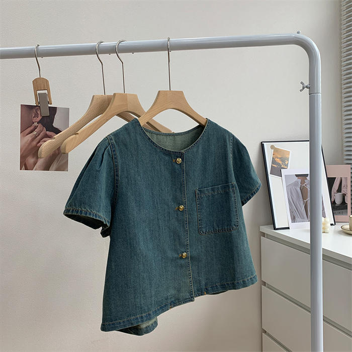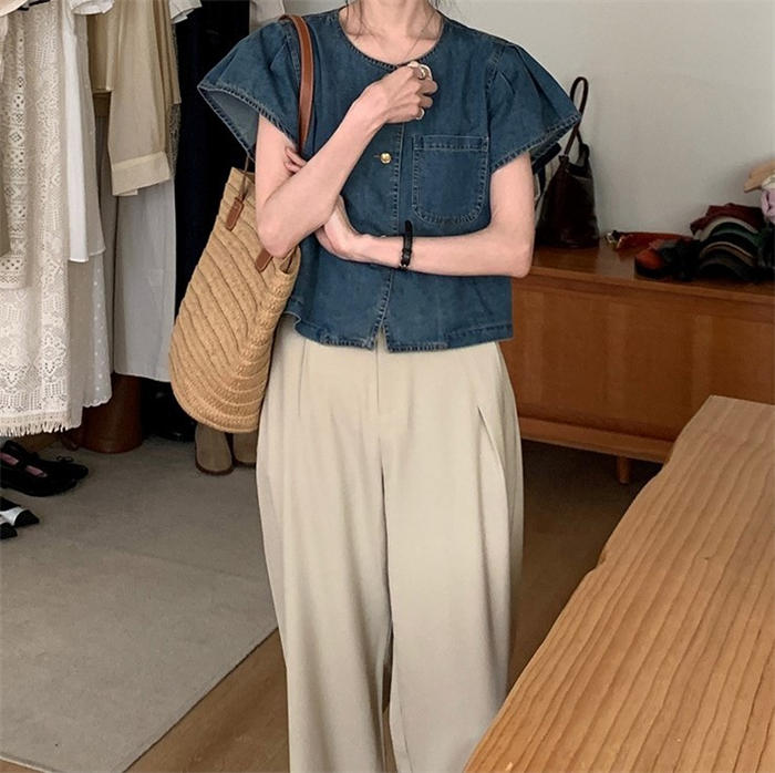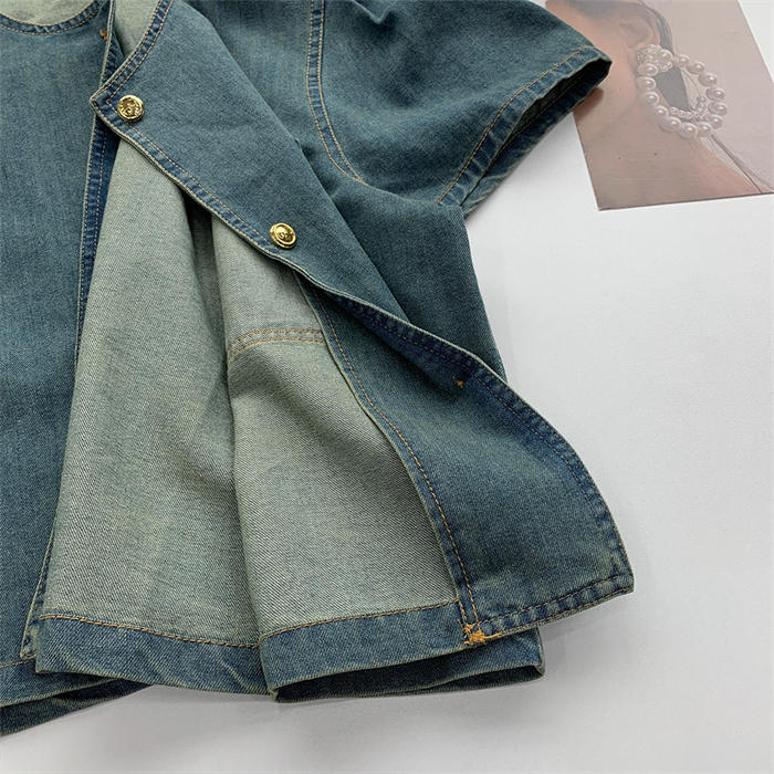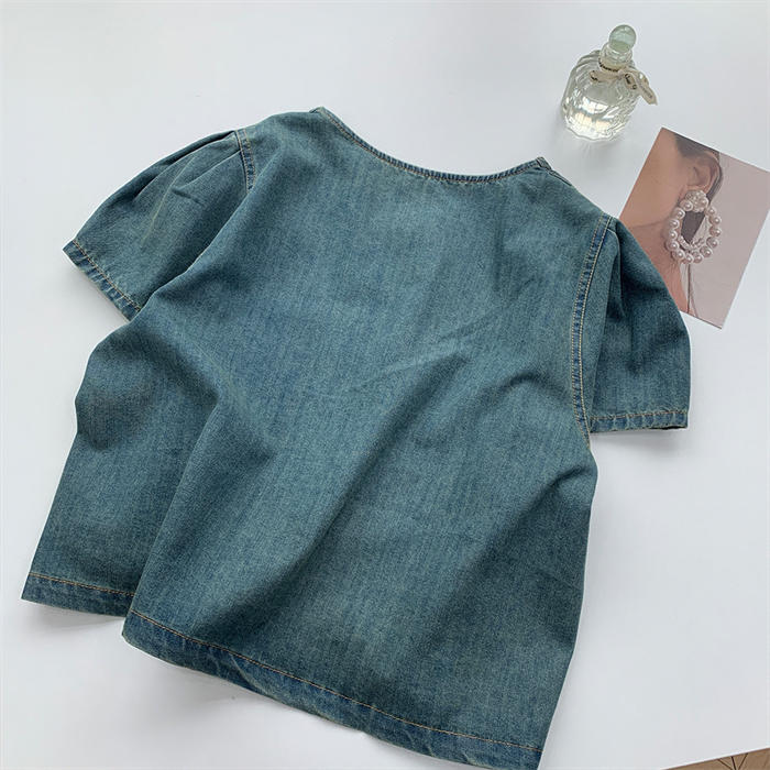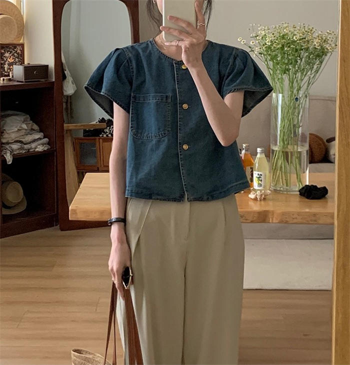 デニムシャツ 半袖 フレア袖 デニム