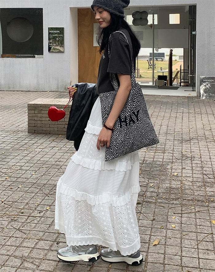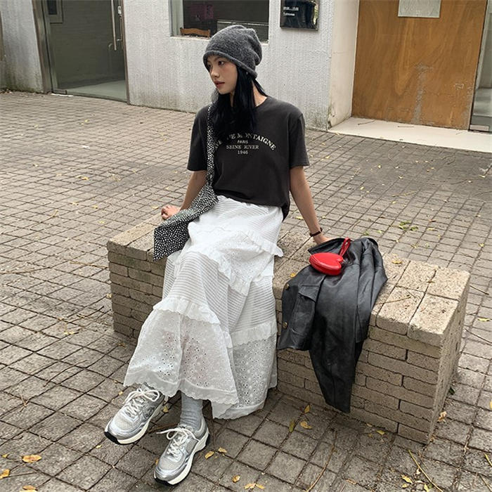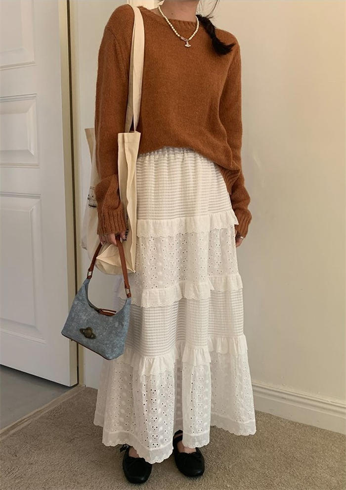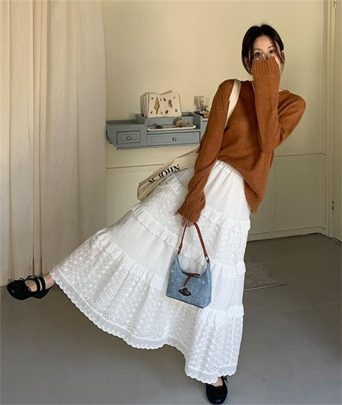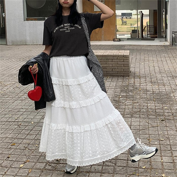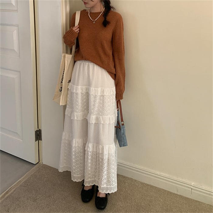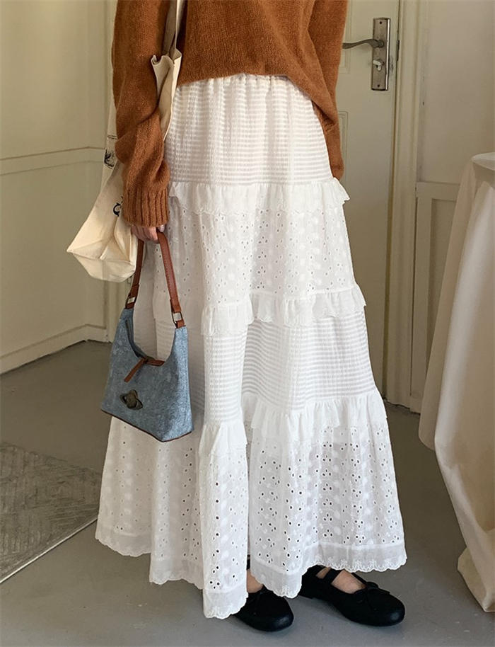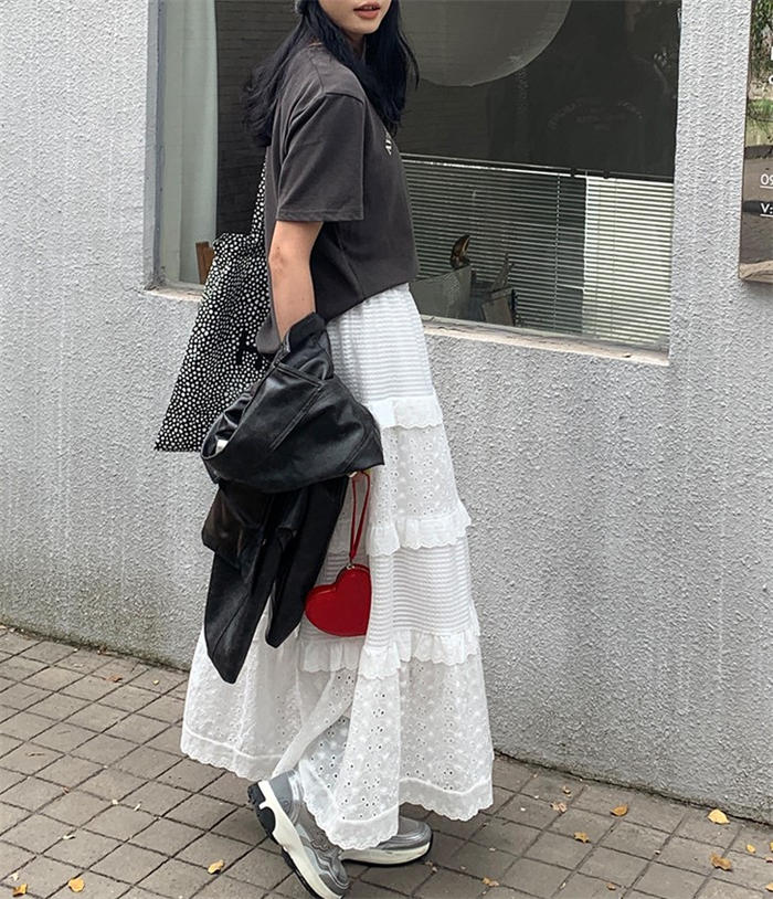 レース ティアードスカート フレアスカ