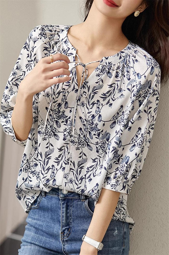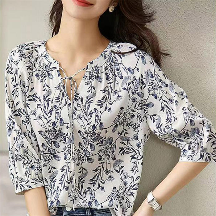 シアースリーブ ドッキングシャツ ボウタイシャツブラウス