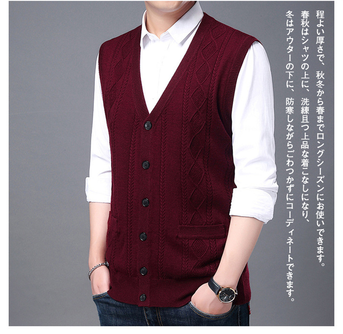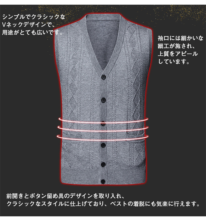 ニットベスト メンズ 前開き ベスト