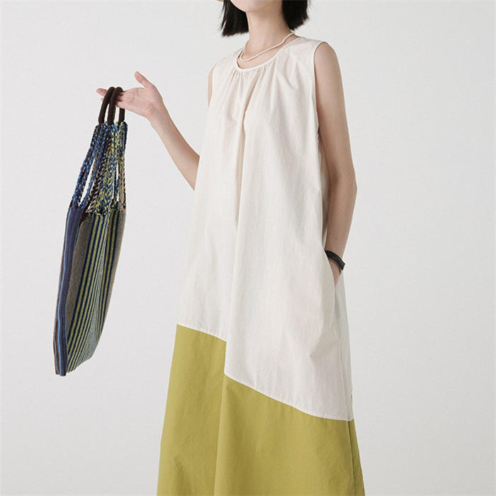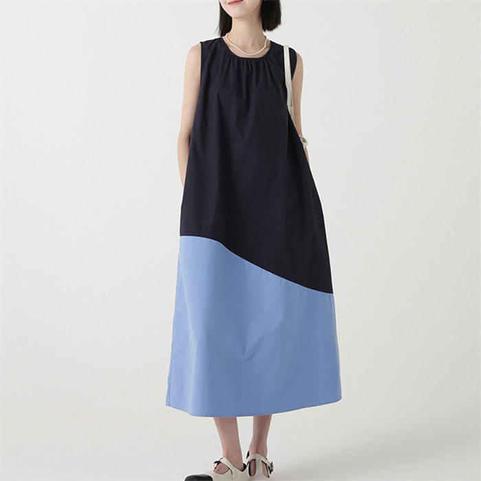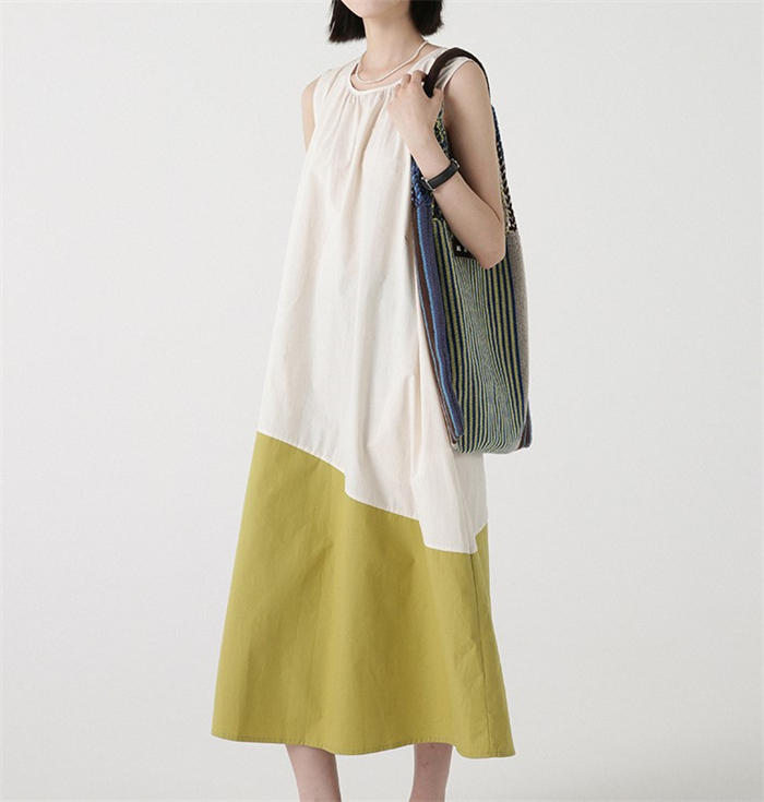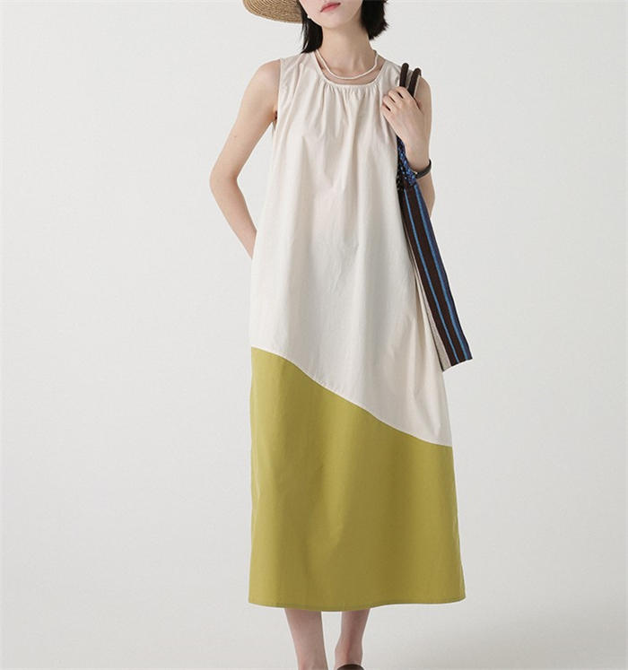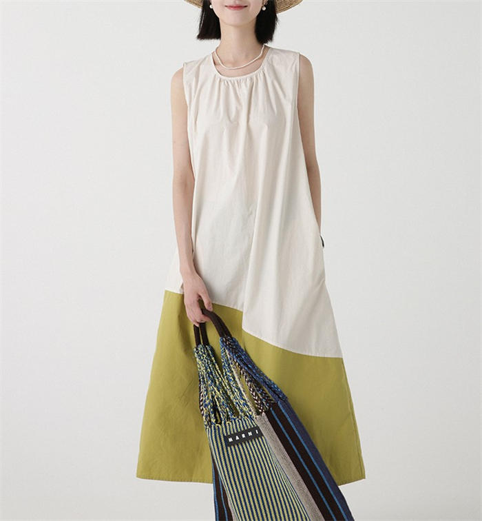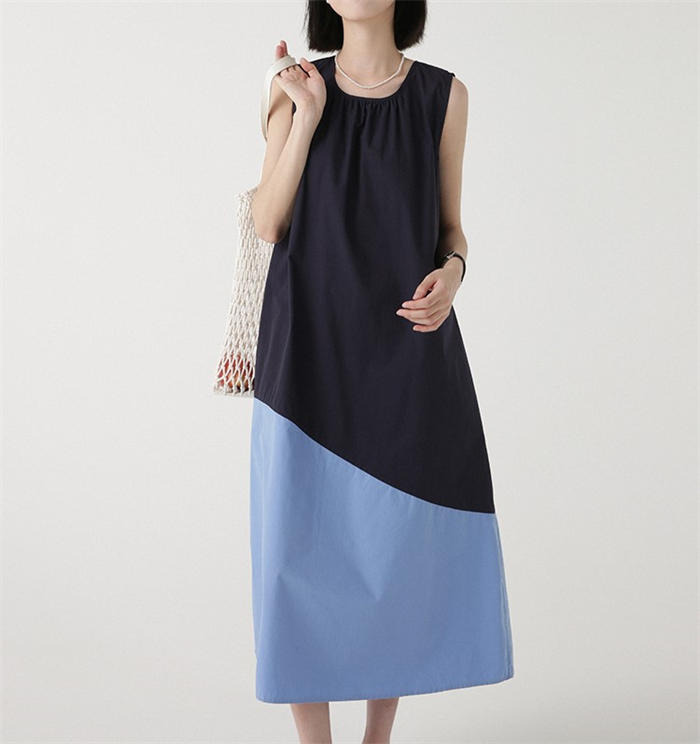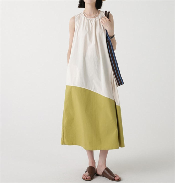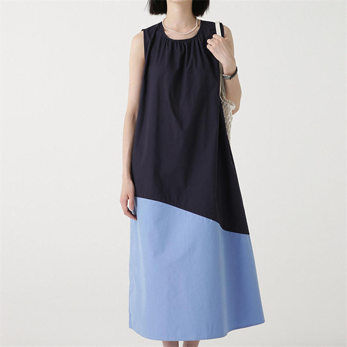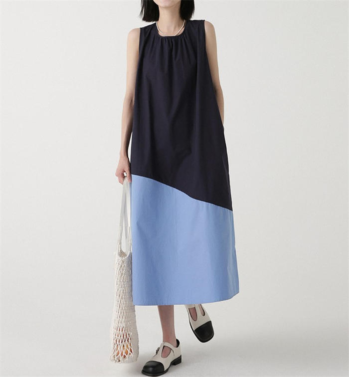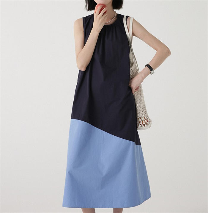 配色 切り替え ノースリーブ ワンピー