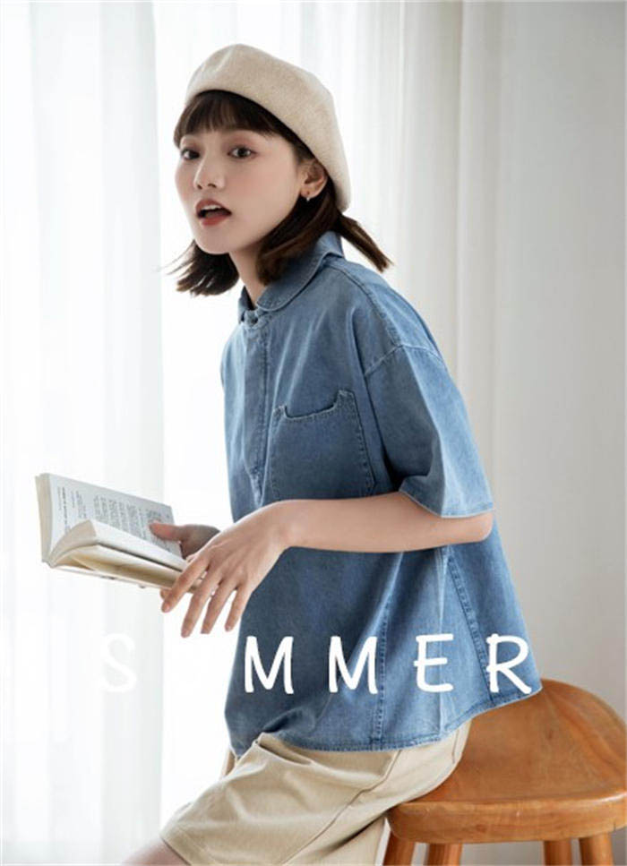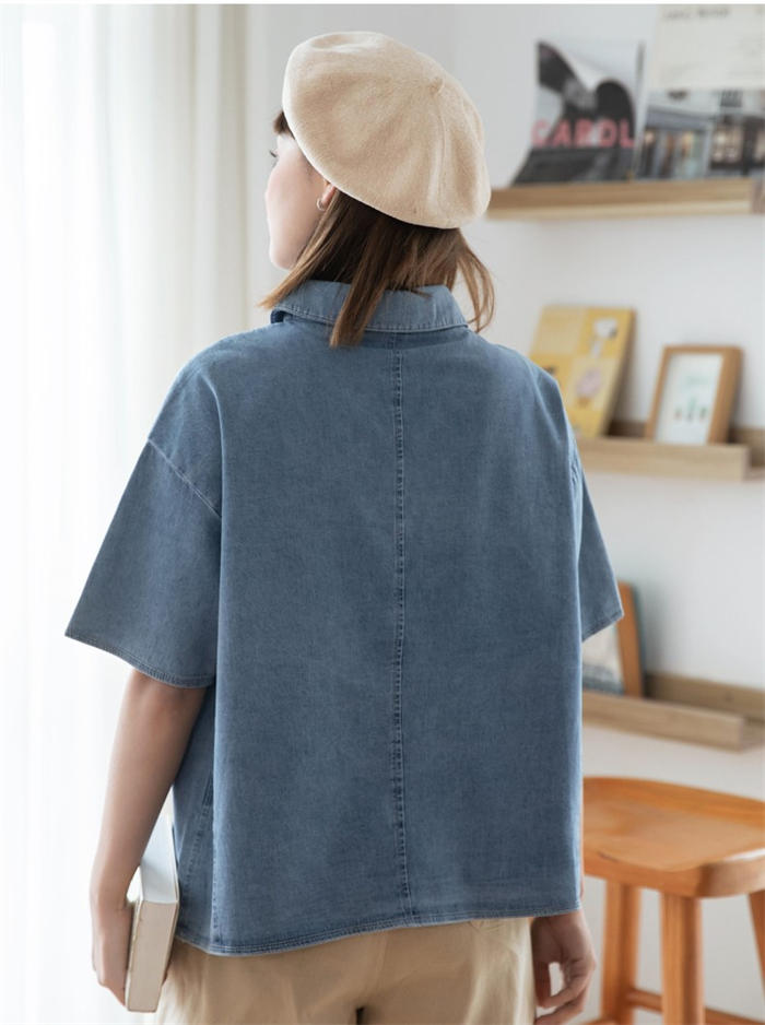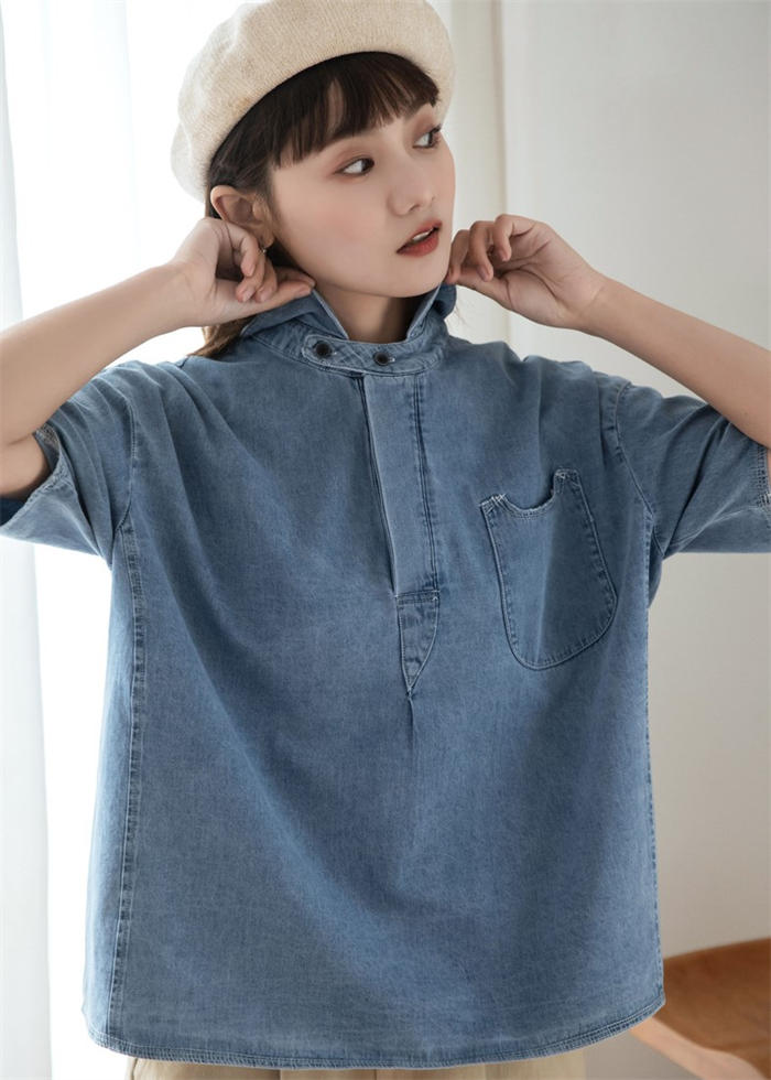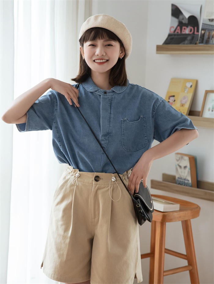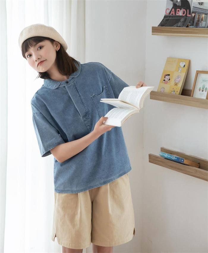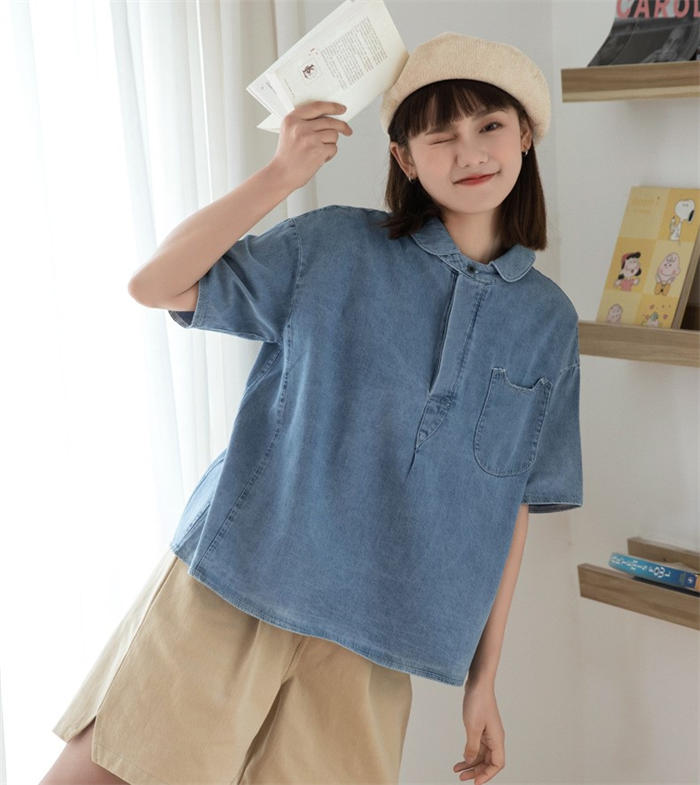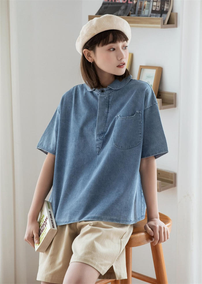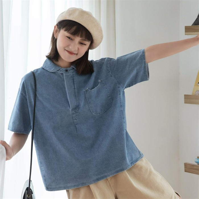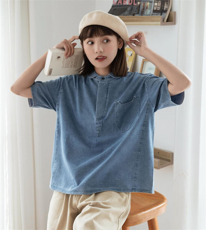 丸襟 デニム ブラウス レディース 春