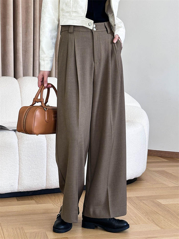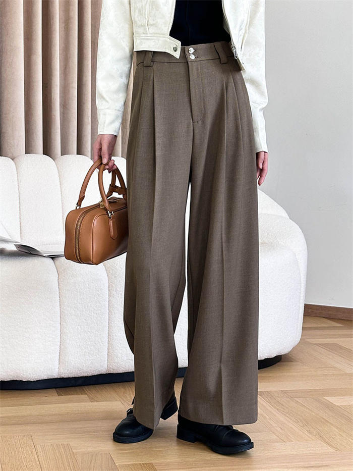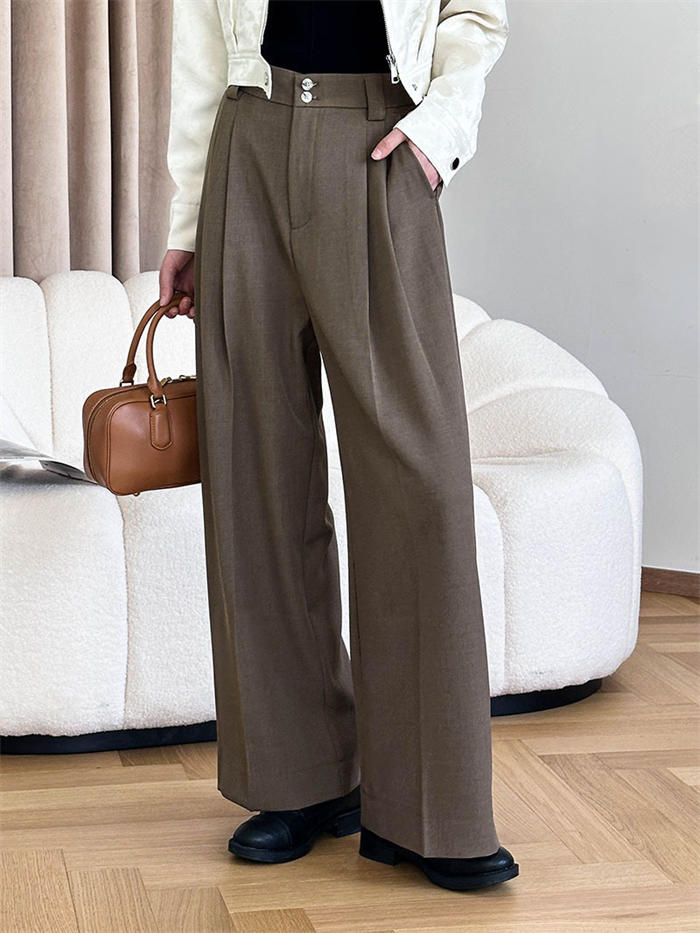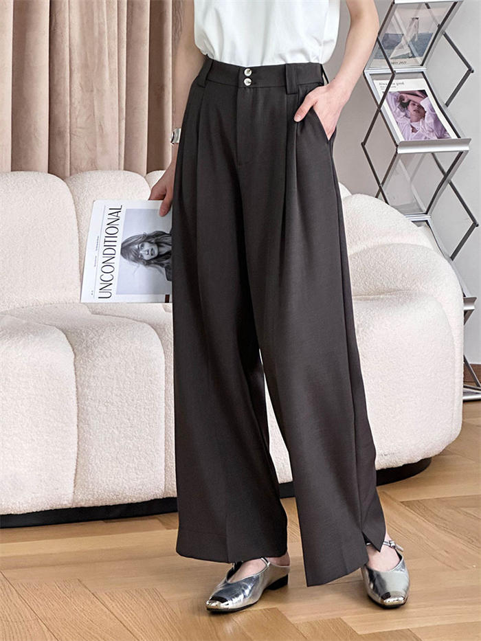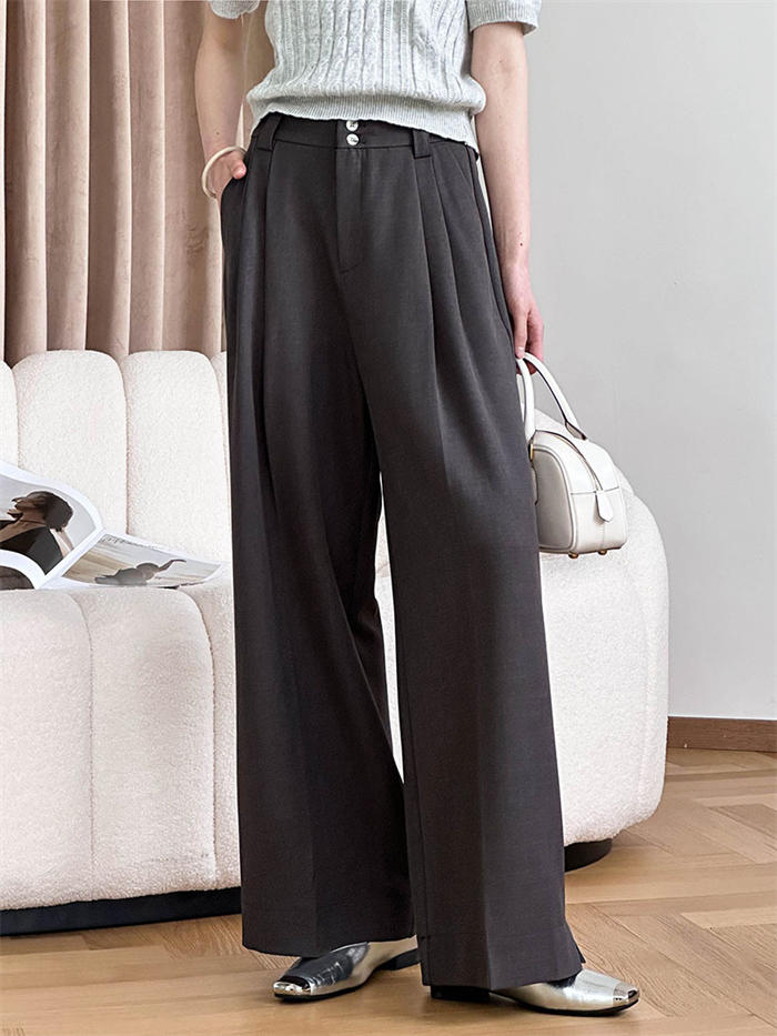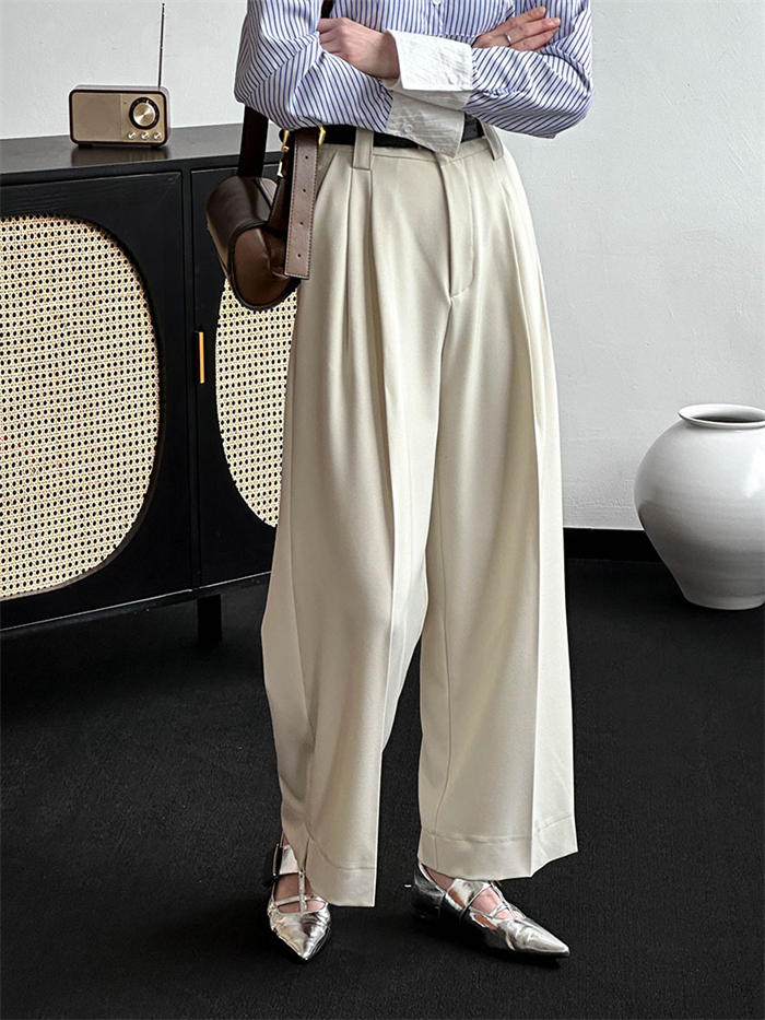 高見えすっきりタックワイドパンツ レデ