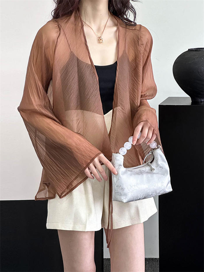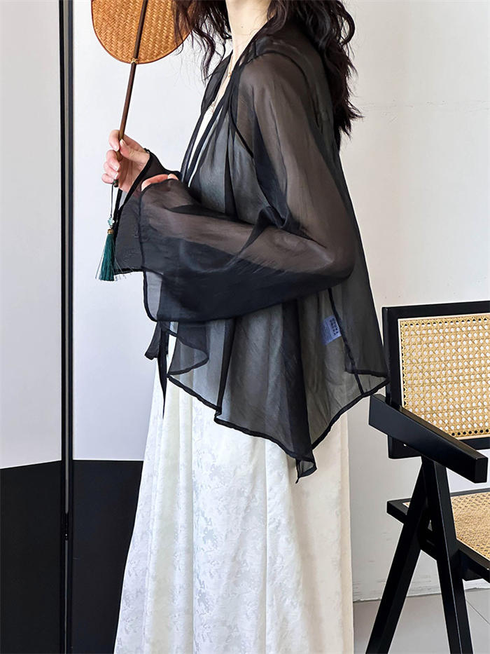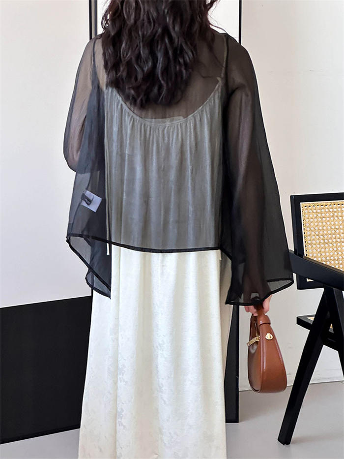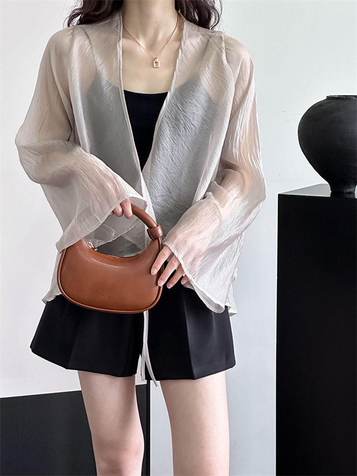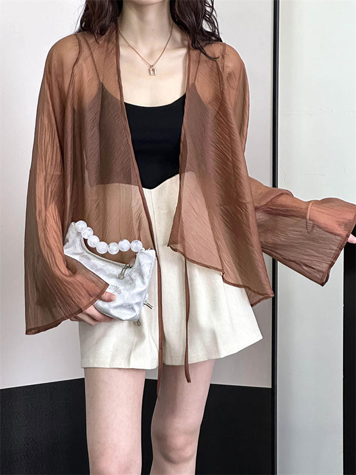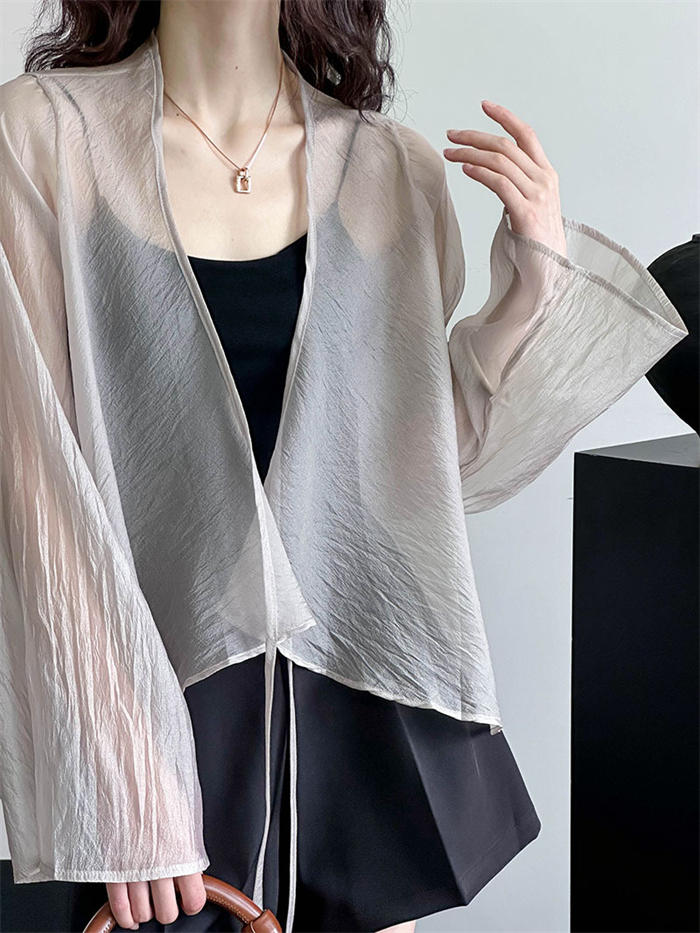 シアースリーブ ドッキングシャツ ボウタイシャツブラウス