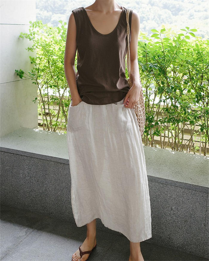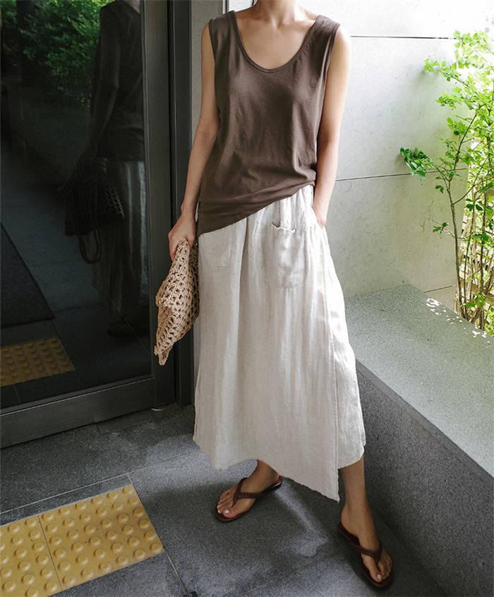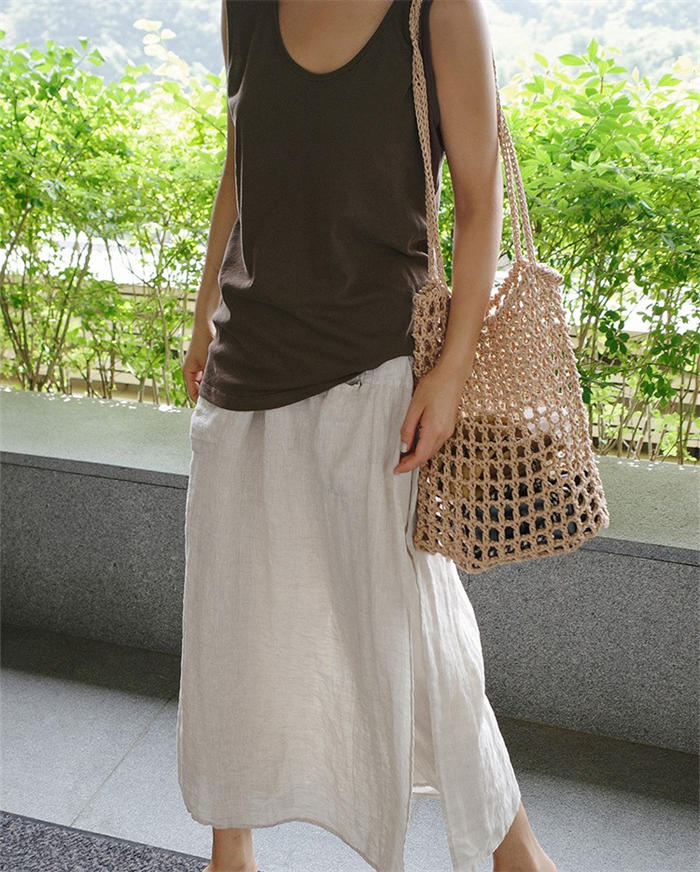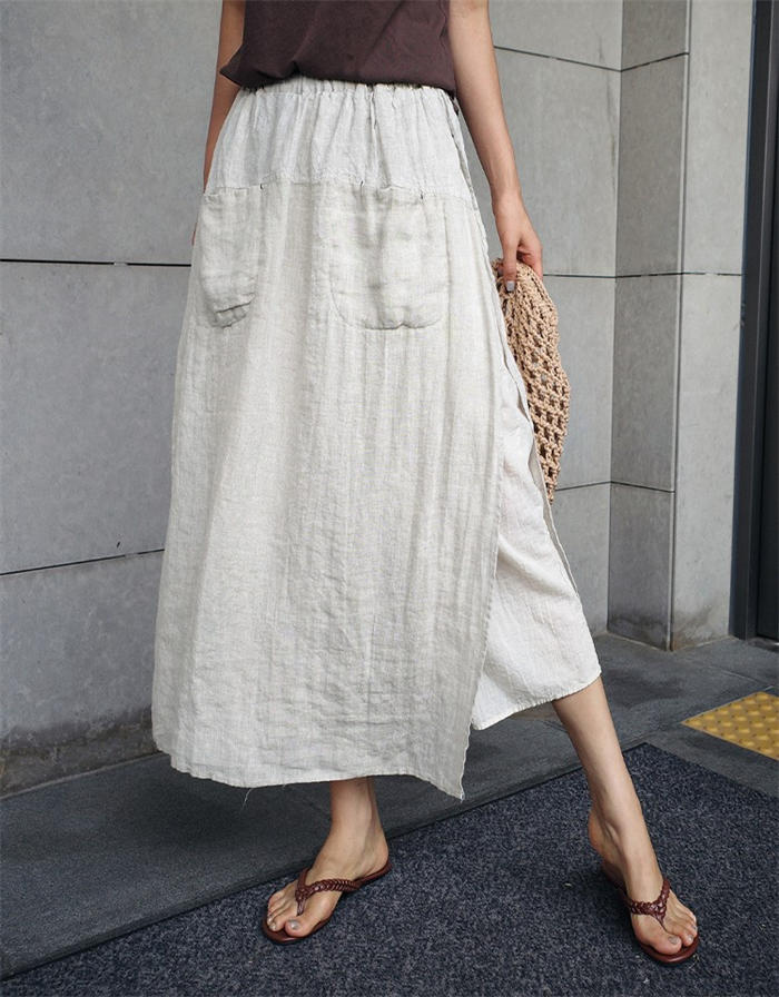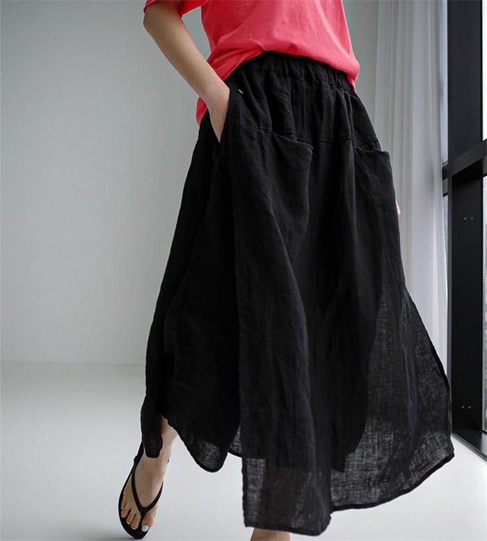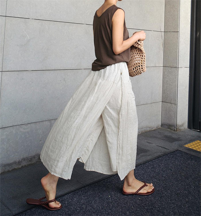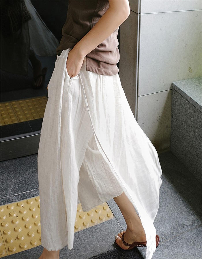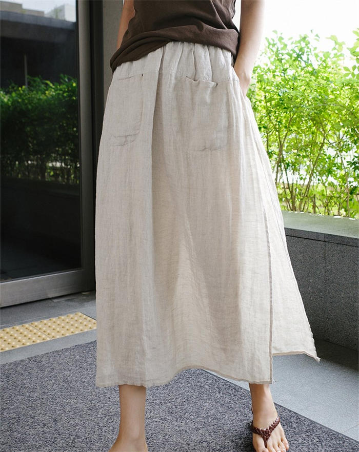 綿麻風 パンツ スカート レイヤード