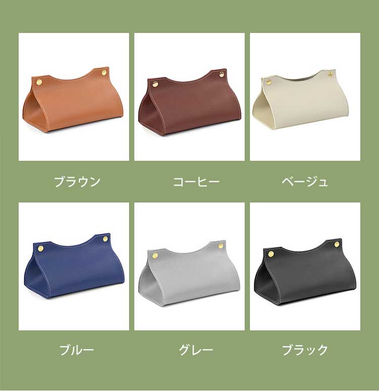 商品詳細商品名 ティッシュケースサイズ 約20×12.5×12cm素材 PU色 ブラック、グレー、ブルー、ベージュ、コーヒー、ブラウン生産国 MADE IN PRC