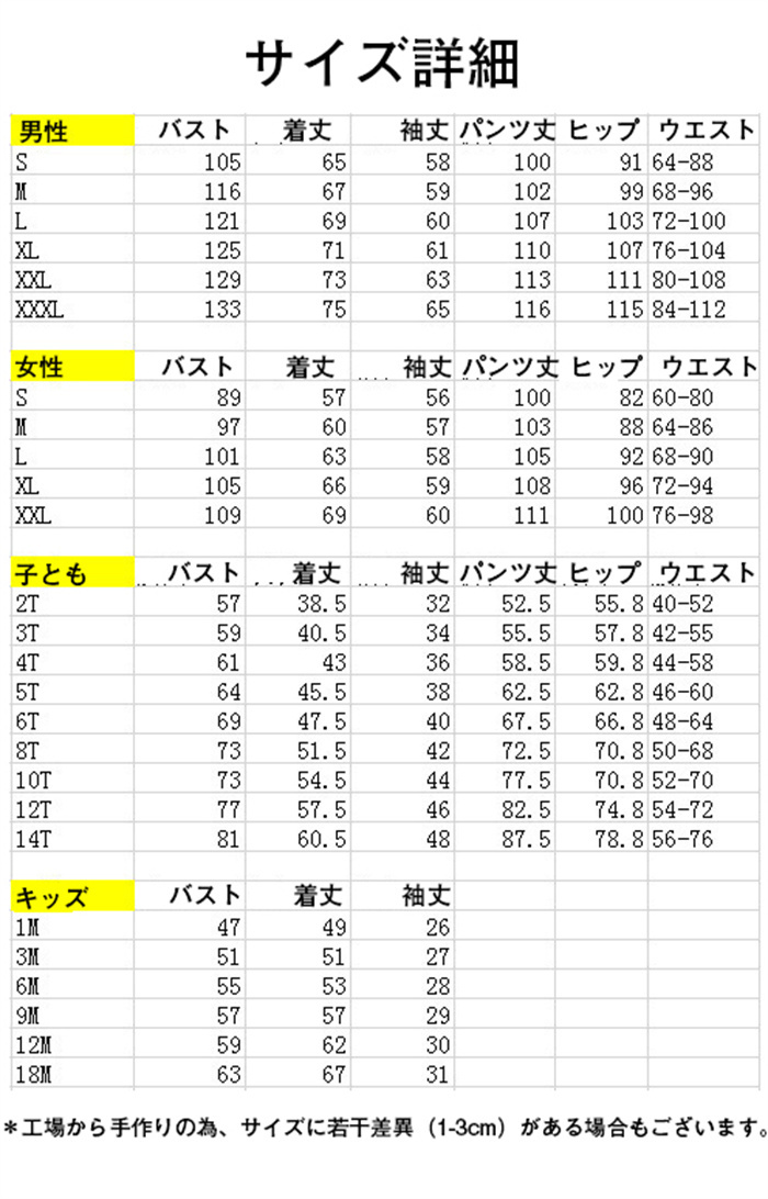 vertical-key: 女性S 女性M 女性L 女性XL 女性2XL 男性S 男性M 男性L 男性XL 男性2XL 男性3XL 子供2T 子供3T 子供4T 子供5T 子供6T 子供8T 子供10T 子供12T 子供14T ベービー1M ベービー3M ベービー6M ベービー9M ベービー12M ベービー18M