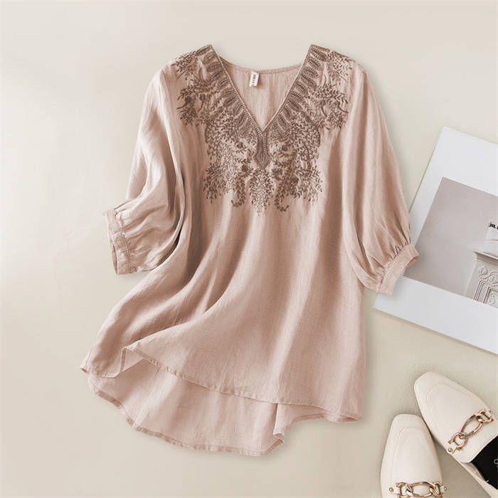 ブラウス 夏 レディース 5分袖 トッ