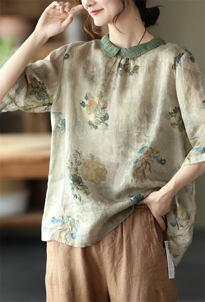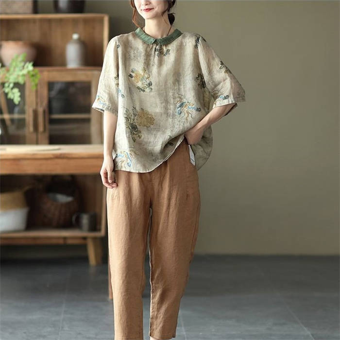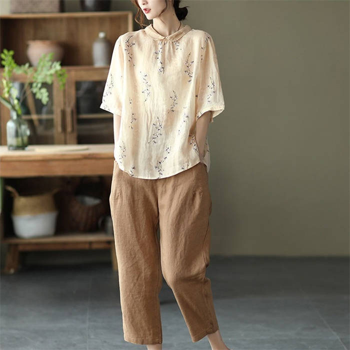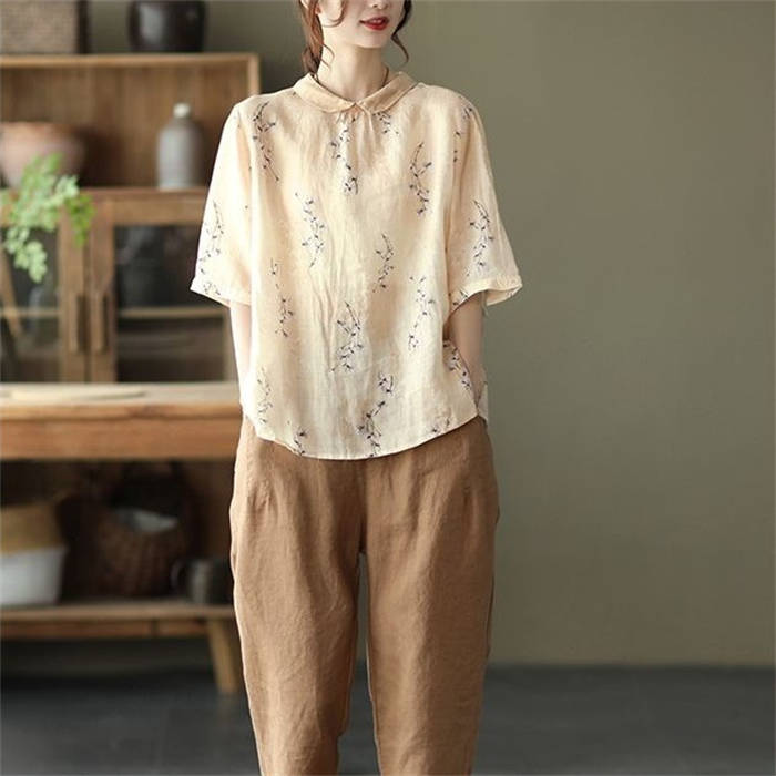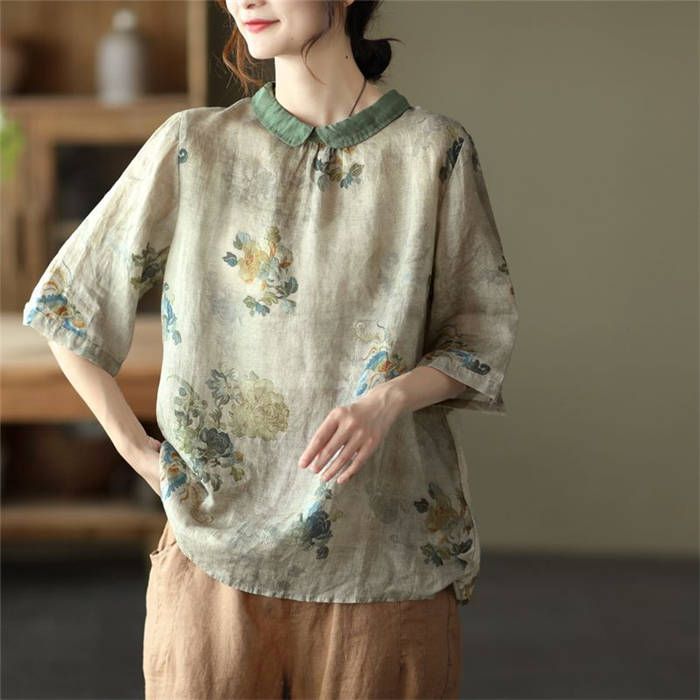 ブラウス 夏 レディース 5分袖 コッ