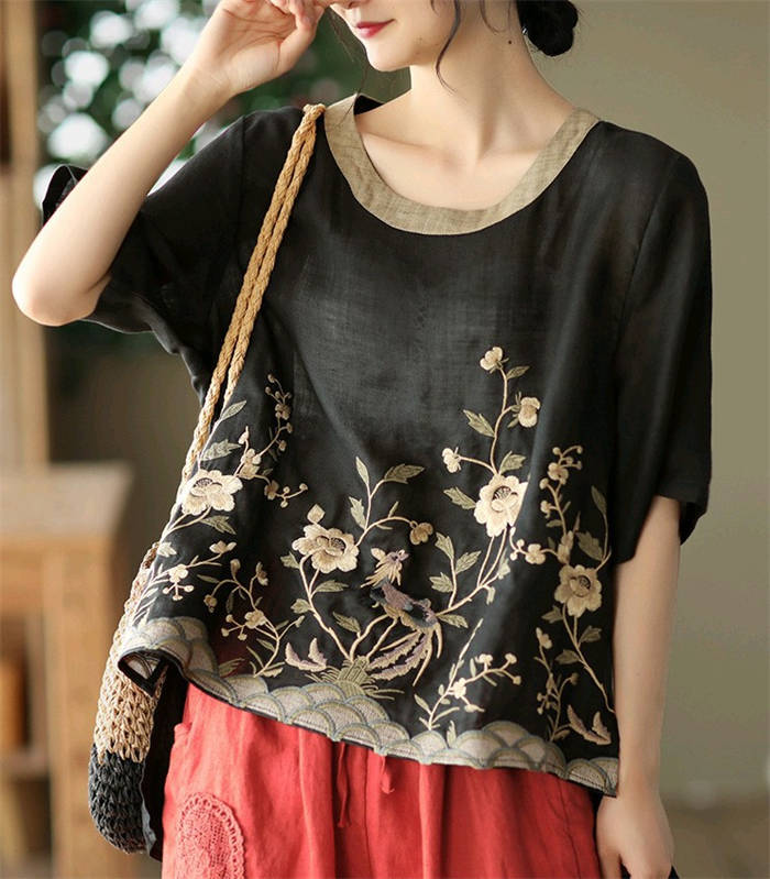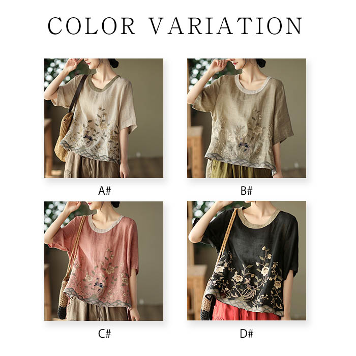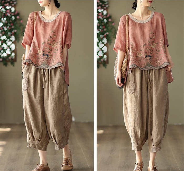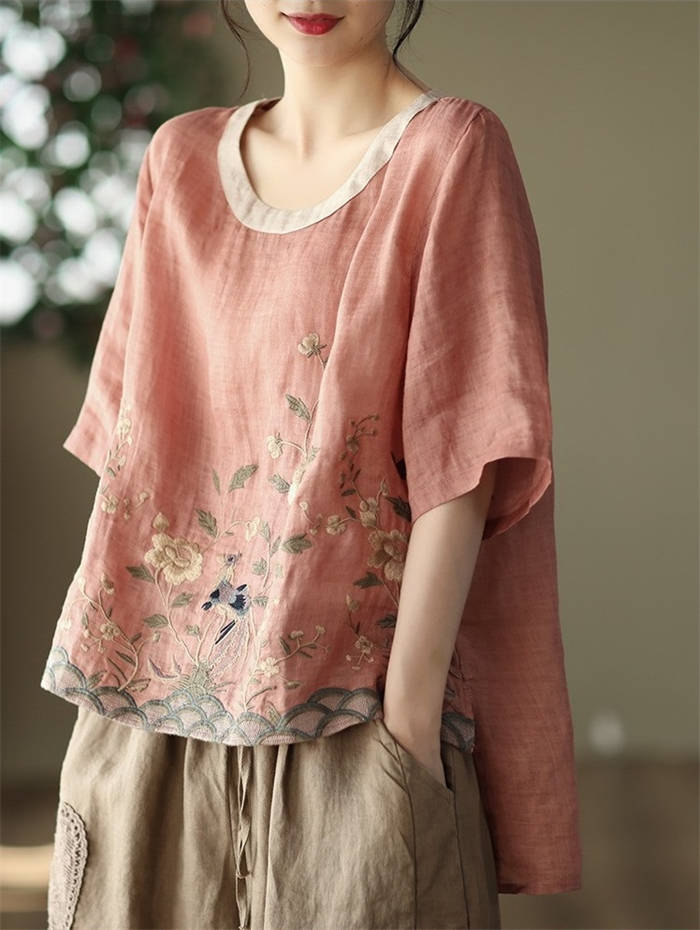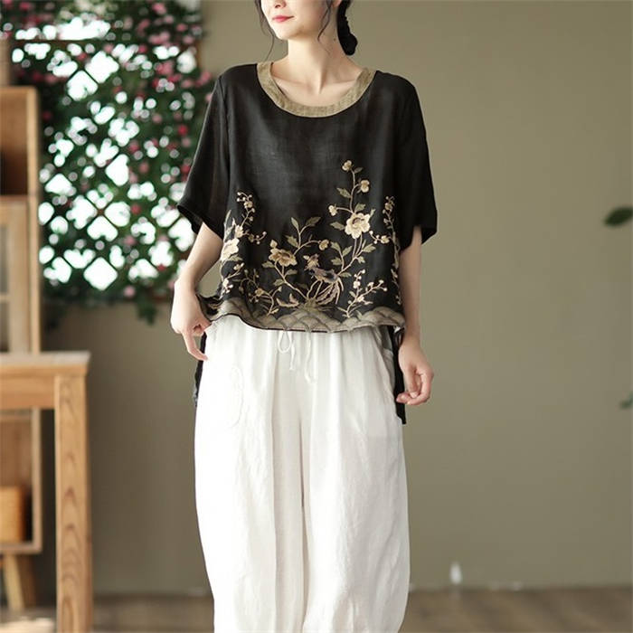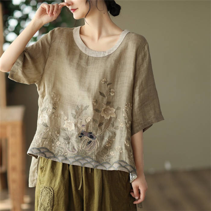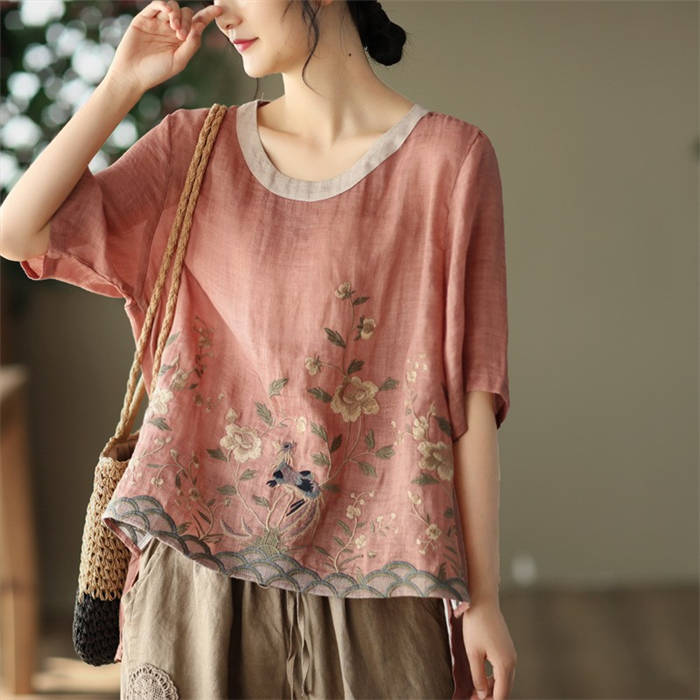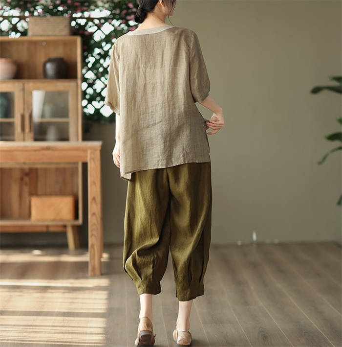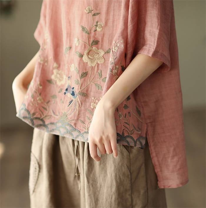 ブラウス 夏 レディース 5分袖 リネ