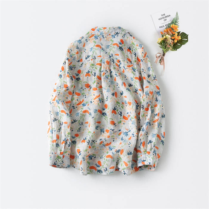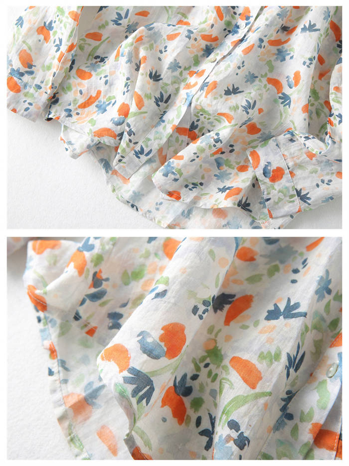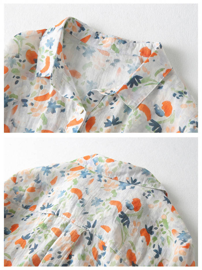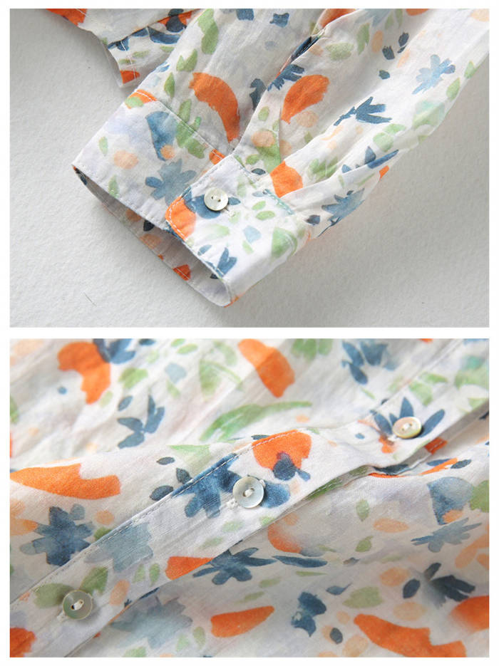 ガーゼシャツ レディース シャツブラウス 春夏秋 100%コットン 長袖 ガーゼ 長袖シャツ 柄シャツ トップス 長袖トップス コットン 綿 春 夏 秋 カジュアル 柄 ナチュラル 30代 40代 5