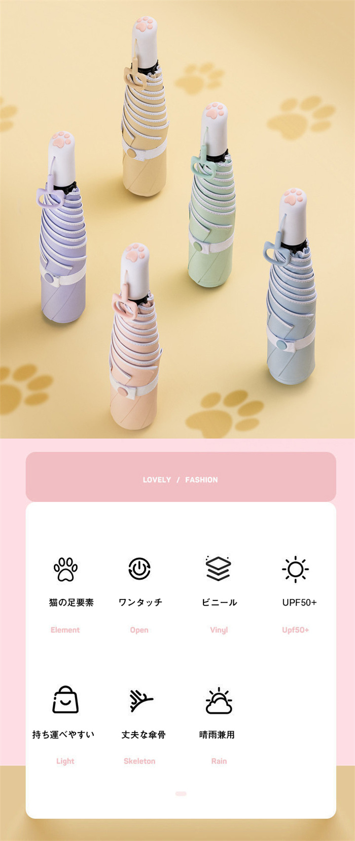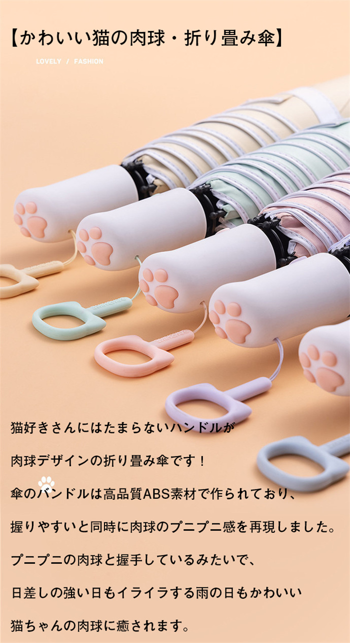 日傘 猫の肉球傘 折り畳み傘 ワンタッ